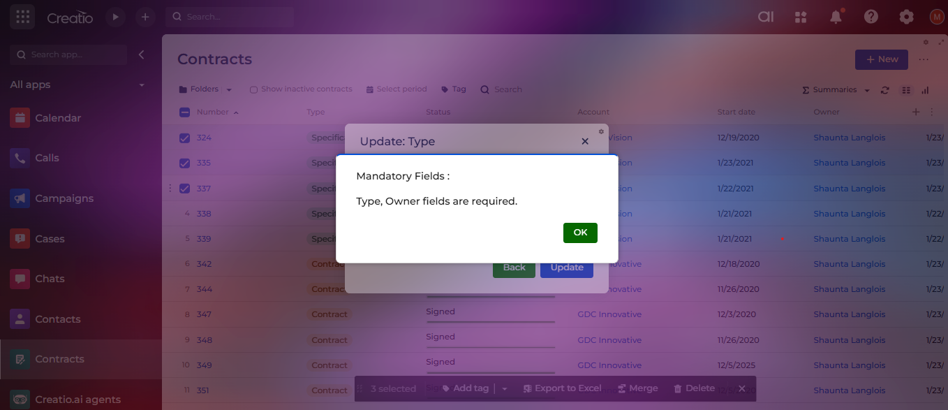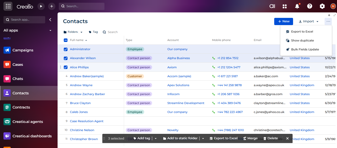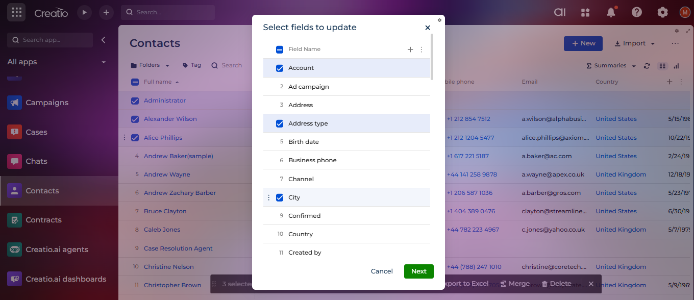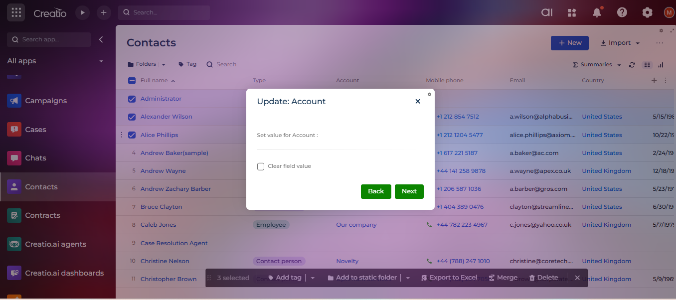 Bulk Fields Update for Creatio is a productivity-focused application that allows users to safely update one or more fields across multiple records in a single operation. It is designed to handle real-world bulk update scenarios with strong validation, flexible selection logic, and full auditability.