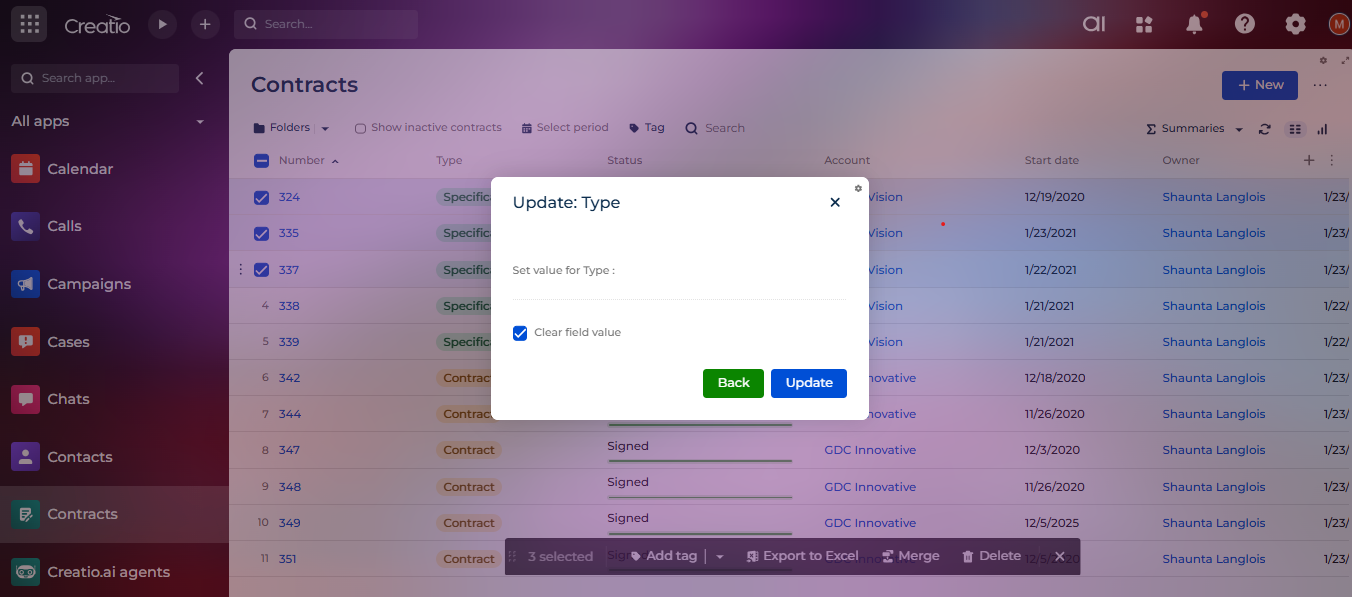 • Install Bulk Fields Update for Creatio from the Creatio Marketplace into your Creatio environment.