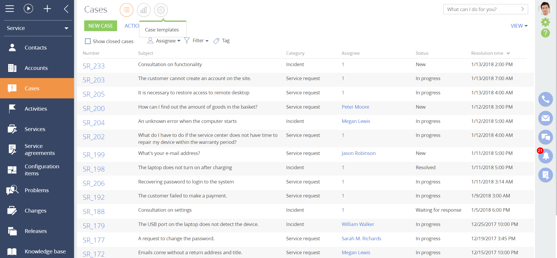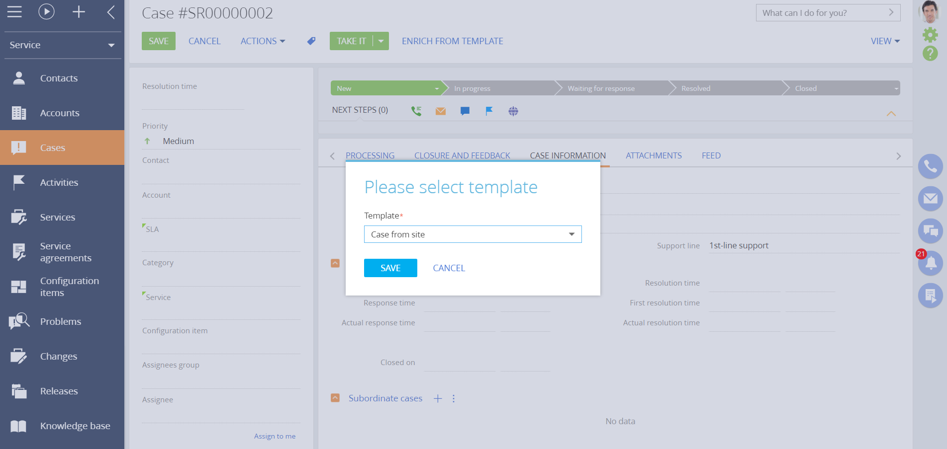 The "Case templates for Creatio" add-on facilitates creating routine cases by automatically populating the fields of the case from preconfigured templates.