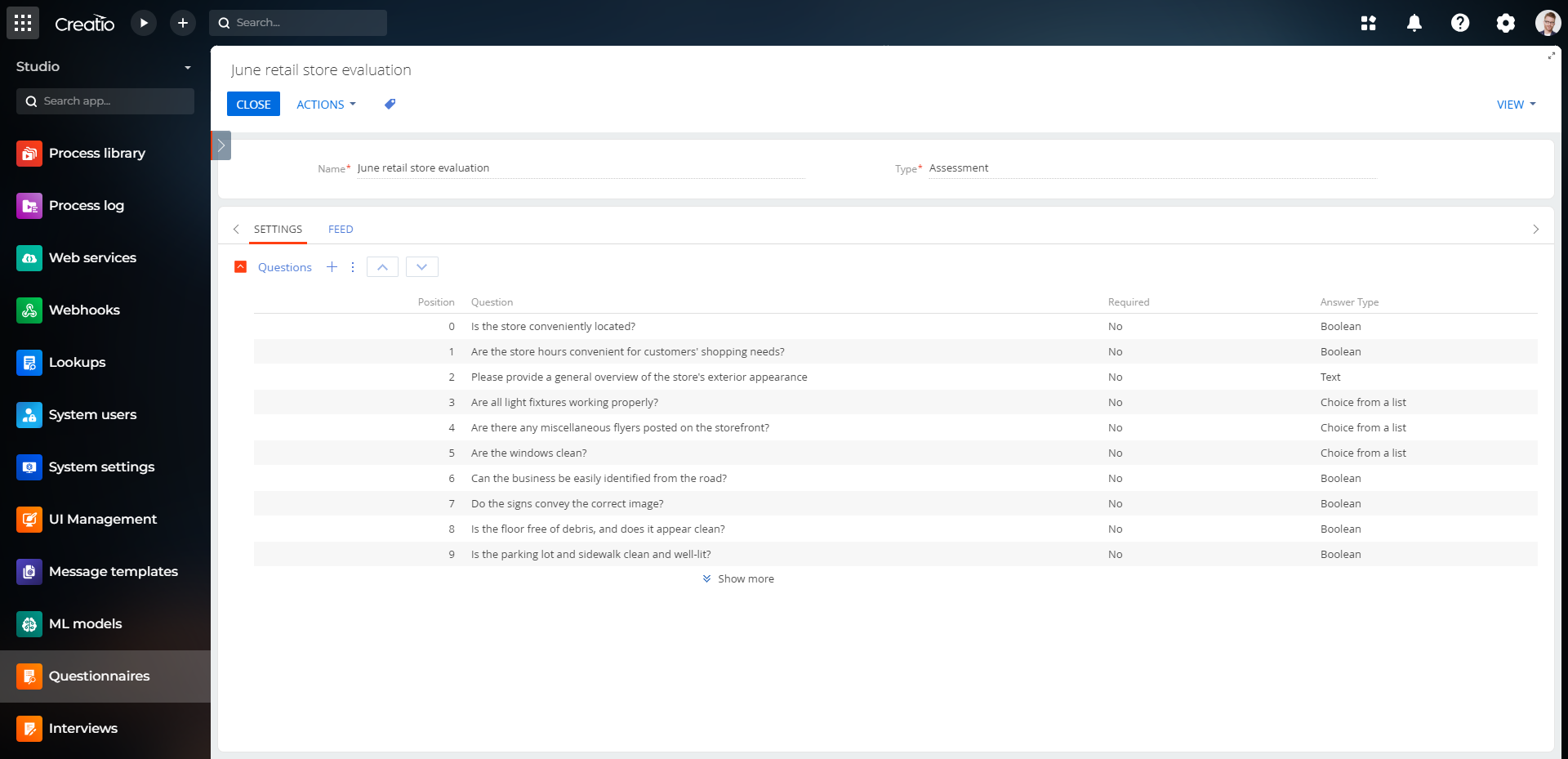 The "Conducting surveys for Creatio" add-on allows you to maintain surveys in Creatio, starting from questionnaire preparation and up to storing customer interview results.