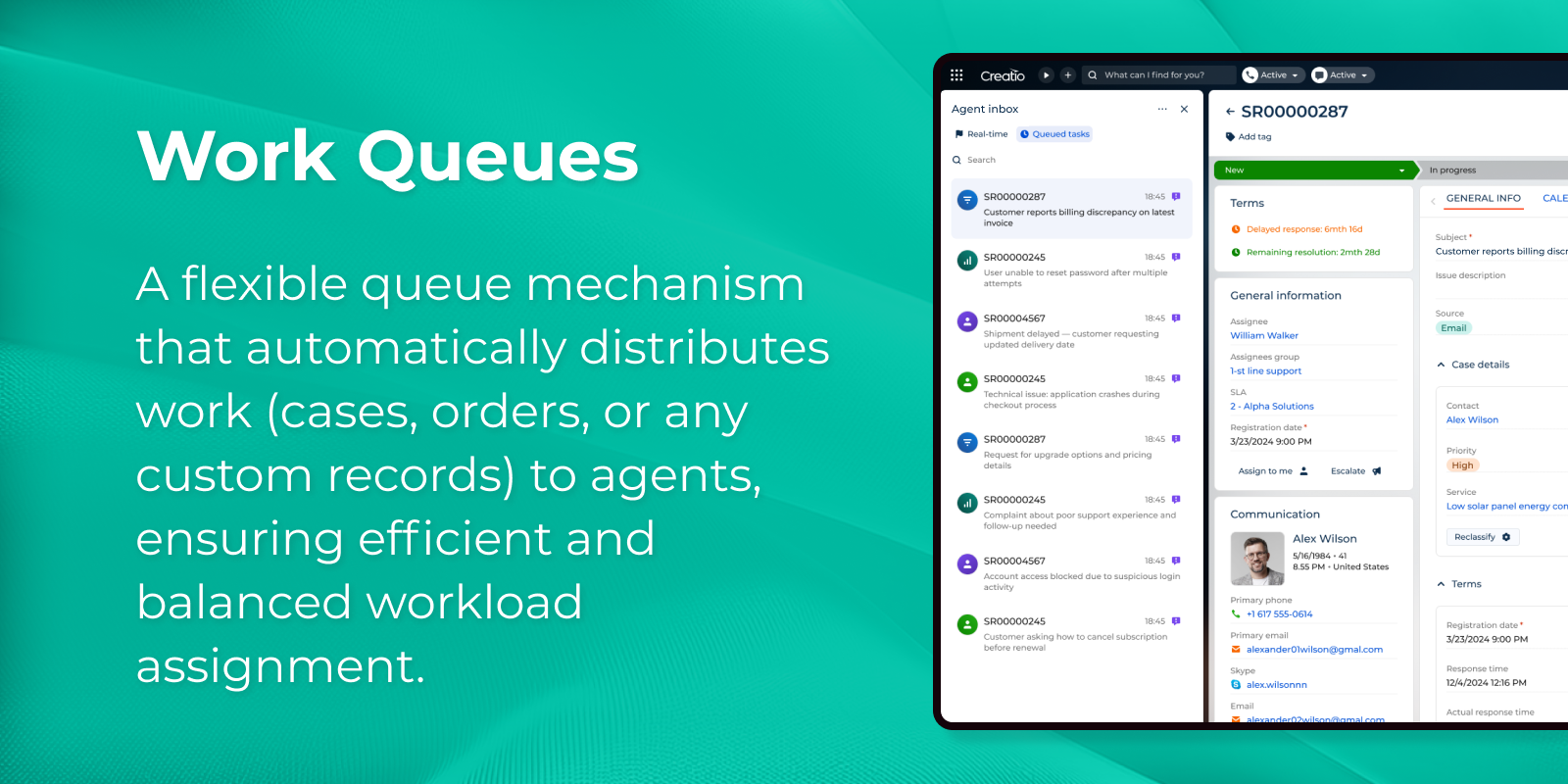 Automatically distribute cases, orders, or other records to agents using configurable queues and routing rules.