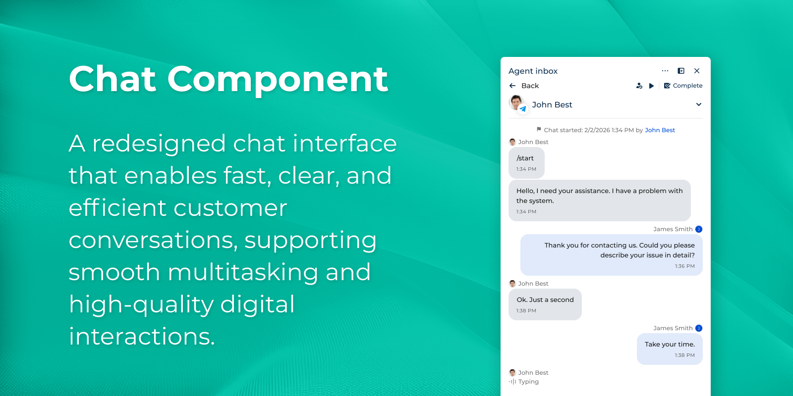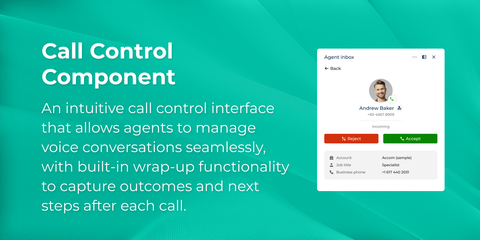 Manage voice conversations and digital chats using modern call and chat interfaces with built-in wrap-up functionality.