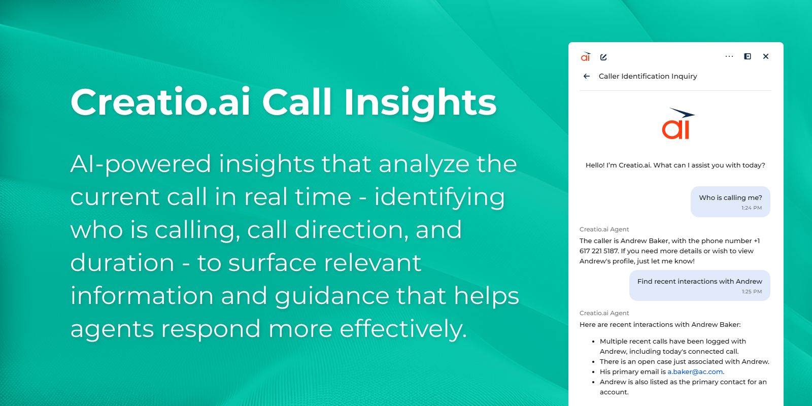 Improve service efficiency with AI-powered insights that analyze active calls and provide contextual information to agents.