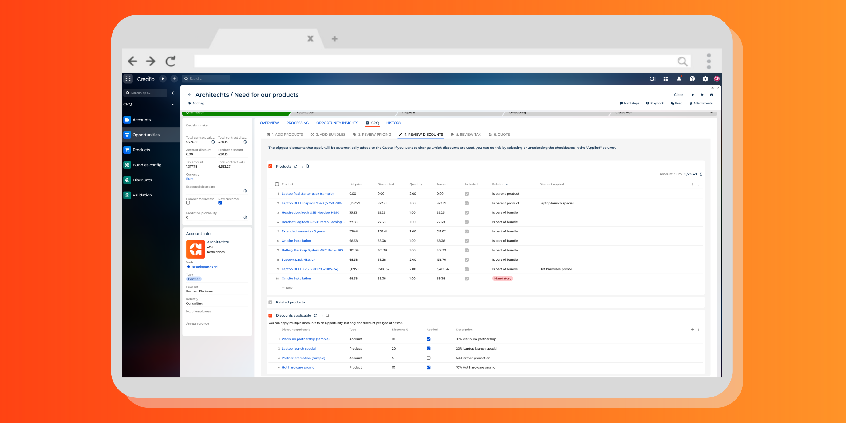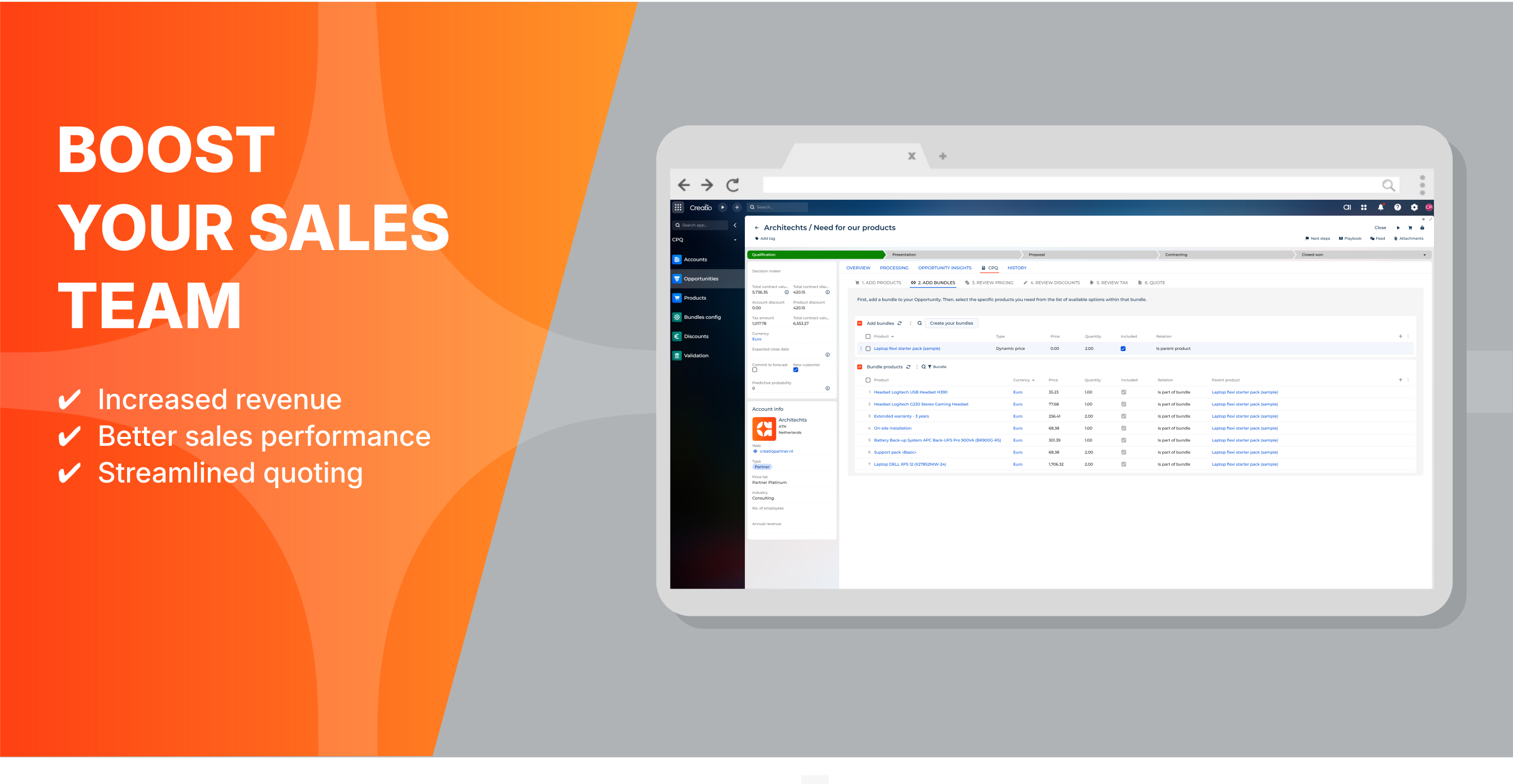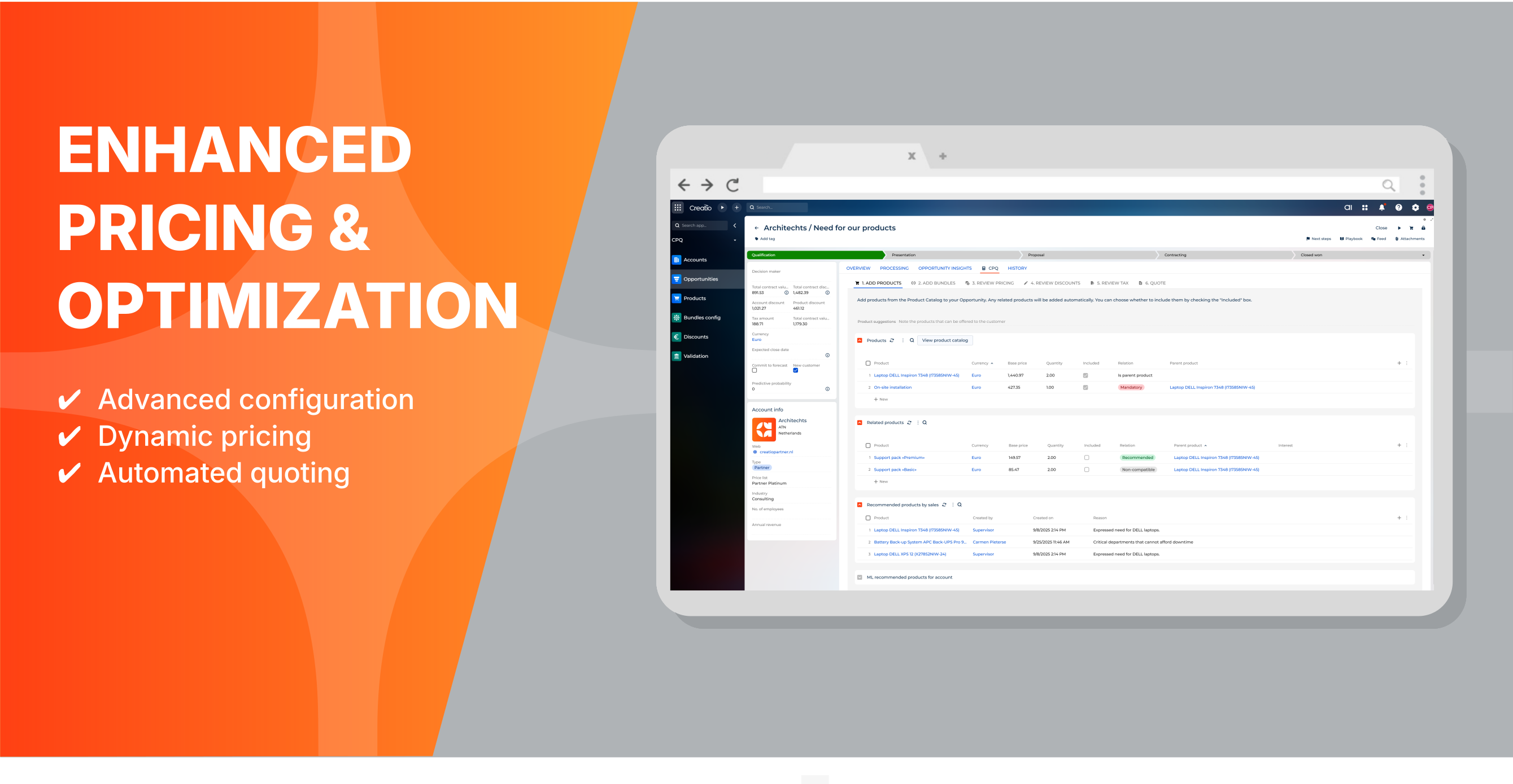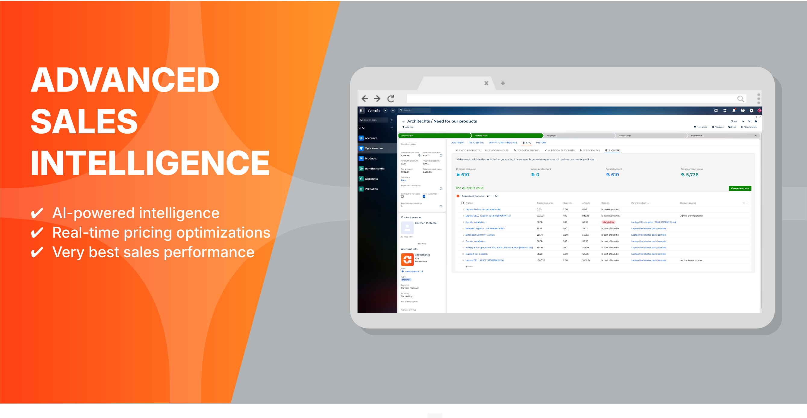 CPQ is an advanced sales tool that automates and guides you through the quoting process, empowering your sales team to easily assemble complex and accurate quotes while ensuring consistency with pricing strategies.