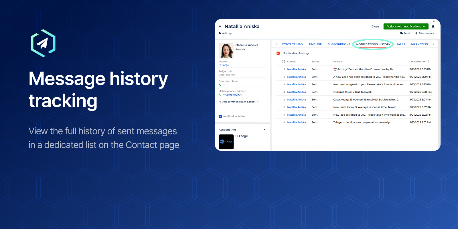 Sales Teams: Receive instant alerts about new leads, deal stage changes, or overdue tasks directly in Telegram to ensure timely follow-ups and prevent missed opportunities.