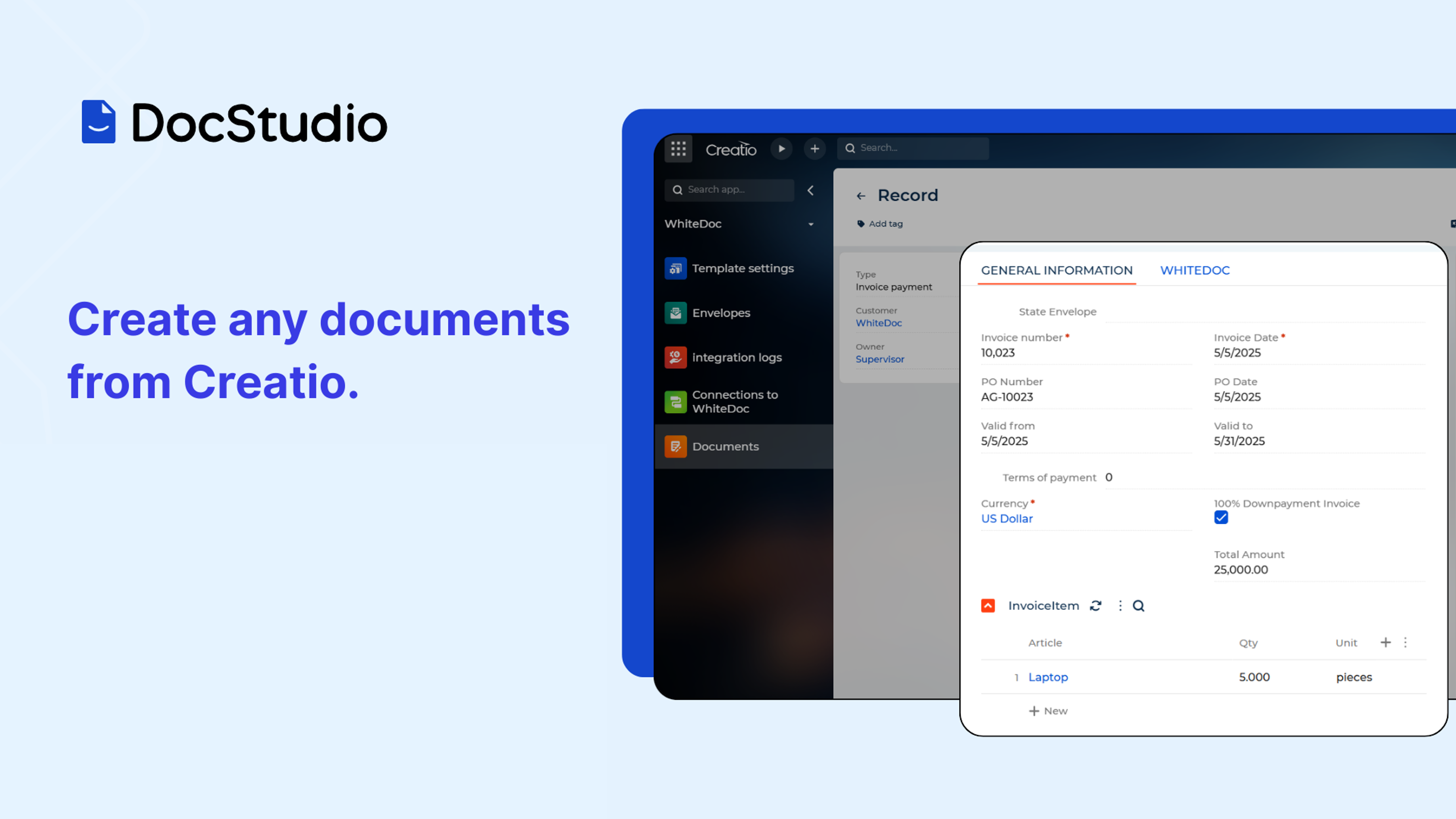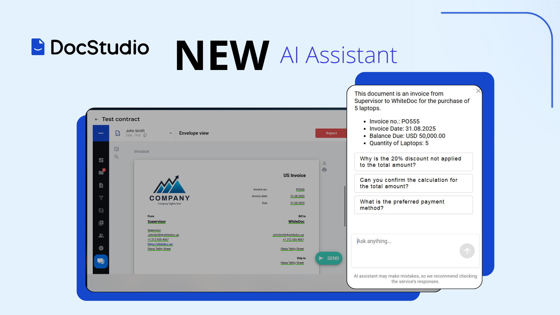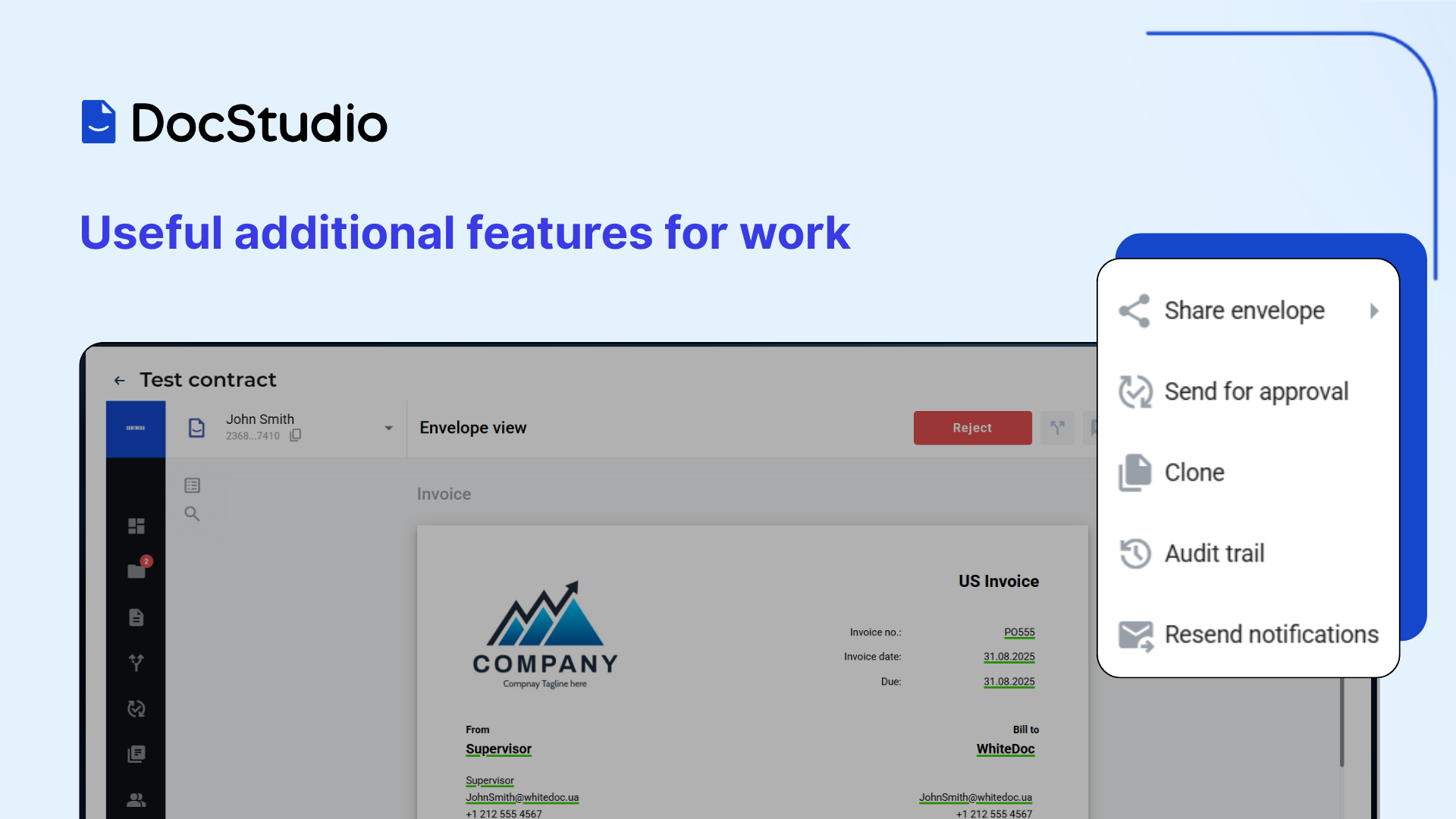 DocStudio is a powerful document automation platform that streamlines processes across departments — from finance and legal to HR, procurement, and sales. It transforms how organizations create, send, sign, and track documents by combining structured data, automation, and secure electronic signatures in one environment.