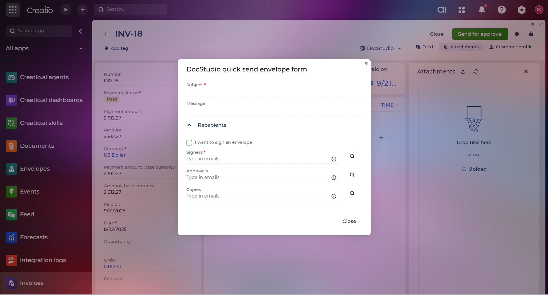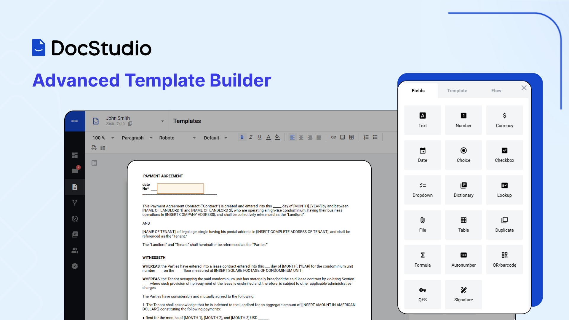 Template Designer & Branding: Create reusable, on-brand templates for contracts, invoices, orders, and more.