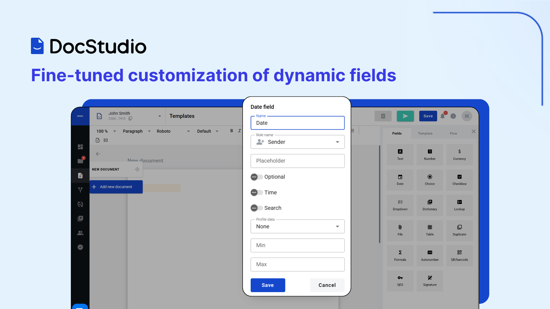 Data-Driven Documents: Generate documents from CRM, ERP, or external system data with auto-populating templates.