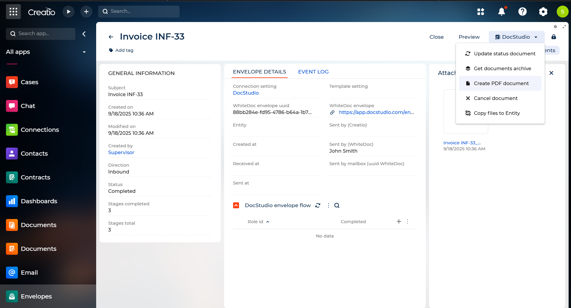 Automation & Workflow Logic: Trigger document creation, signing, and approvals based on system events or user actions.