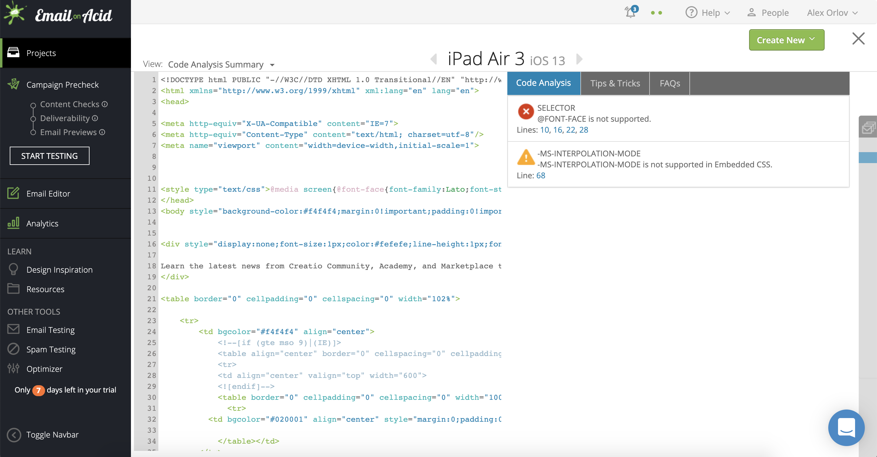 EmailOnAcid email review for Creatio