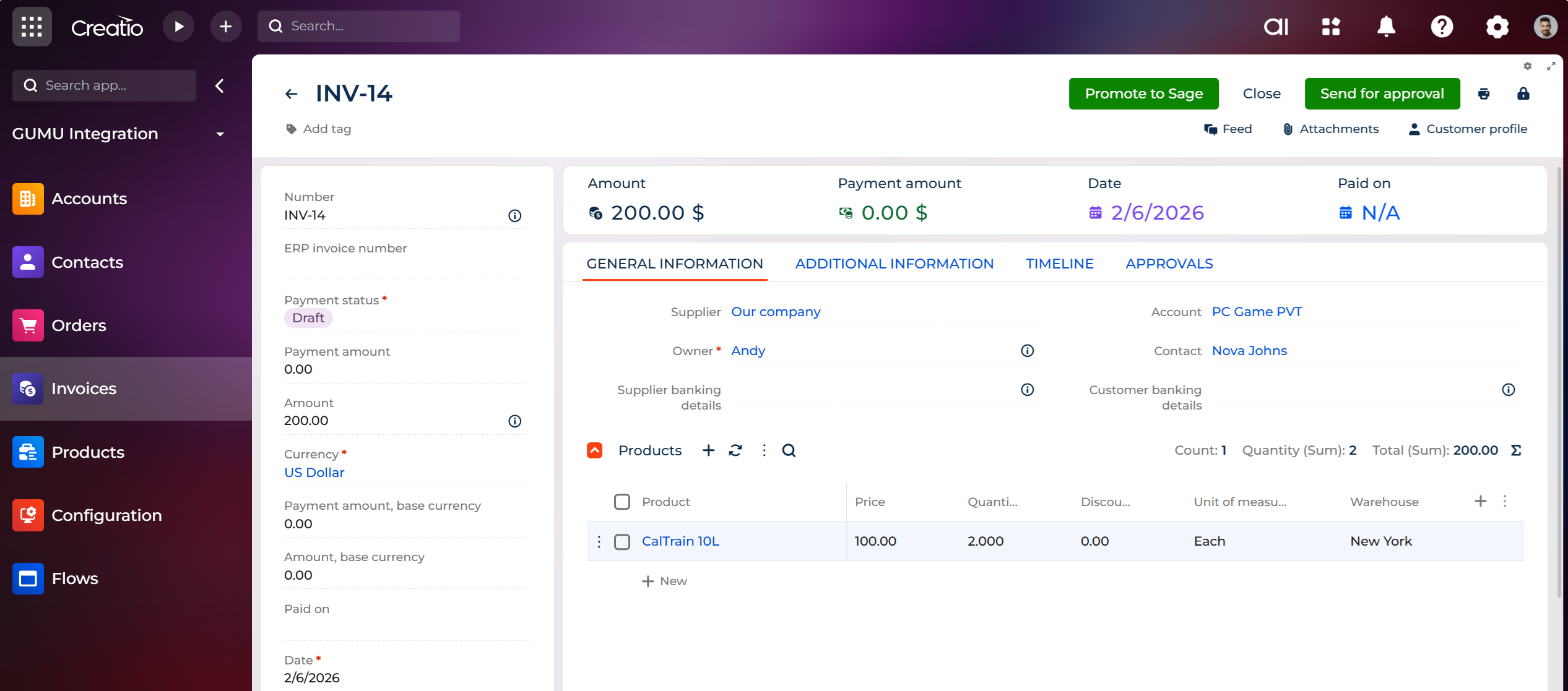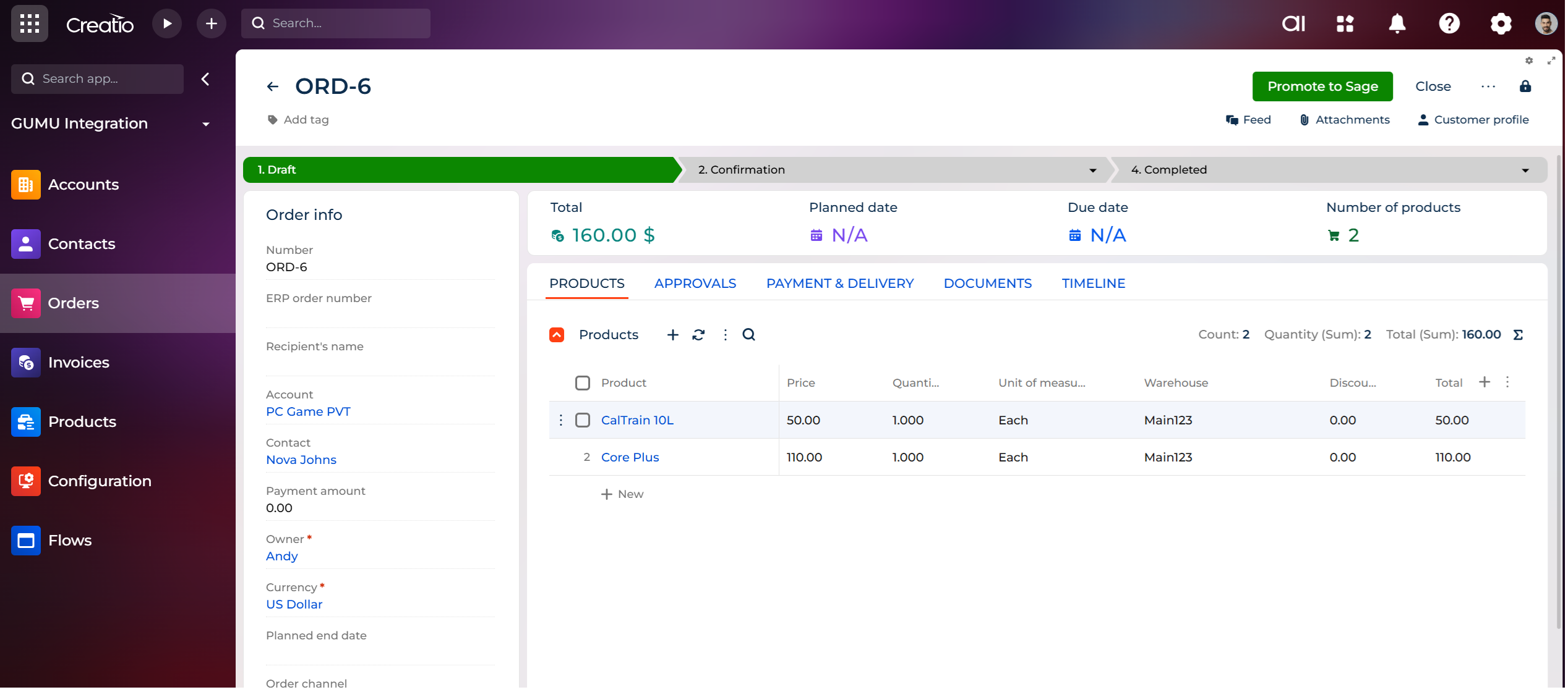 - Finance teams benefit from the accurate and timely transfer of orders and invoices from Creatio to Sage Intacct, reducing reconciliation efforts and errors.