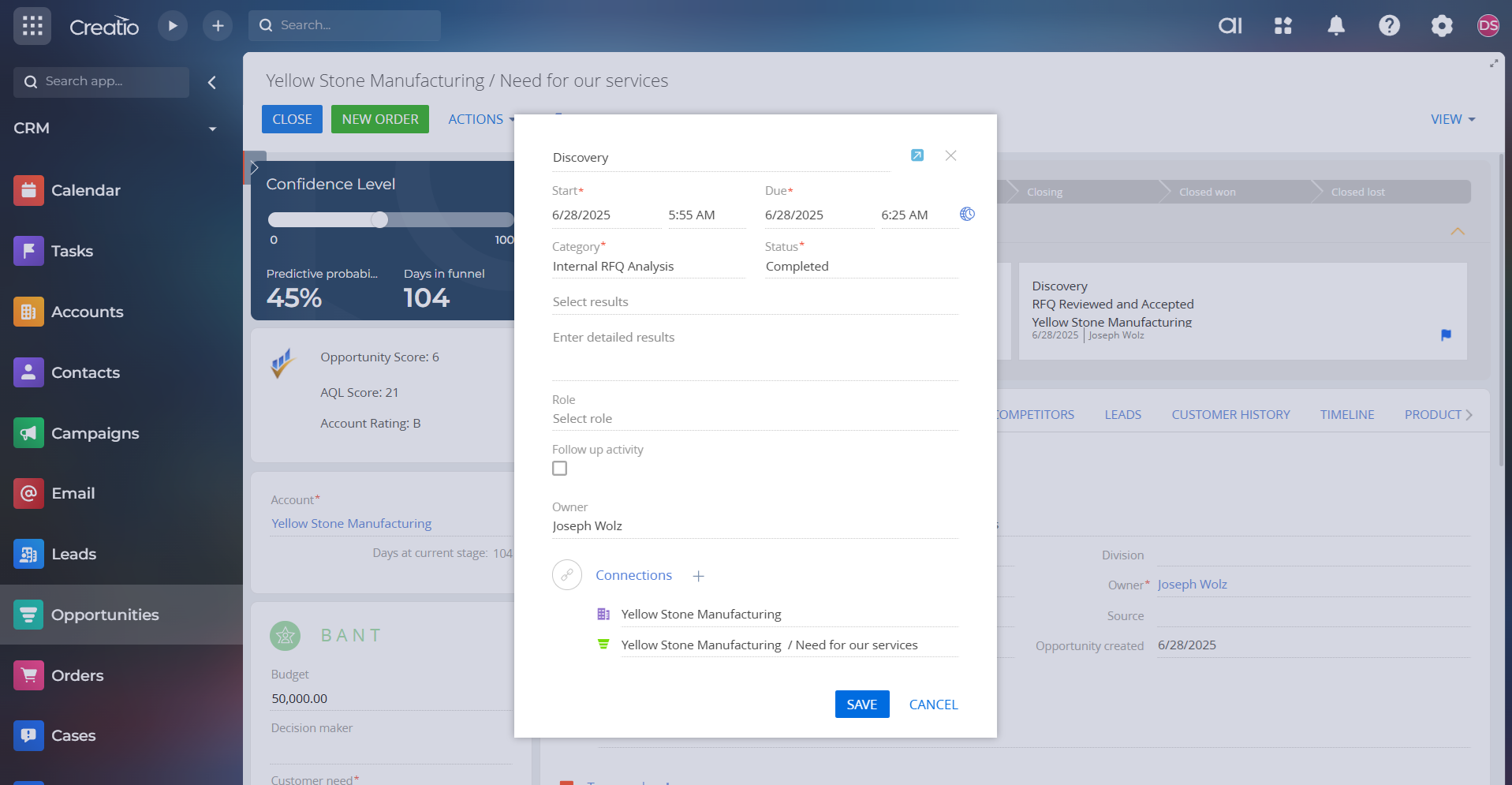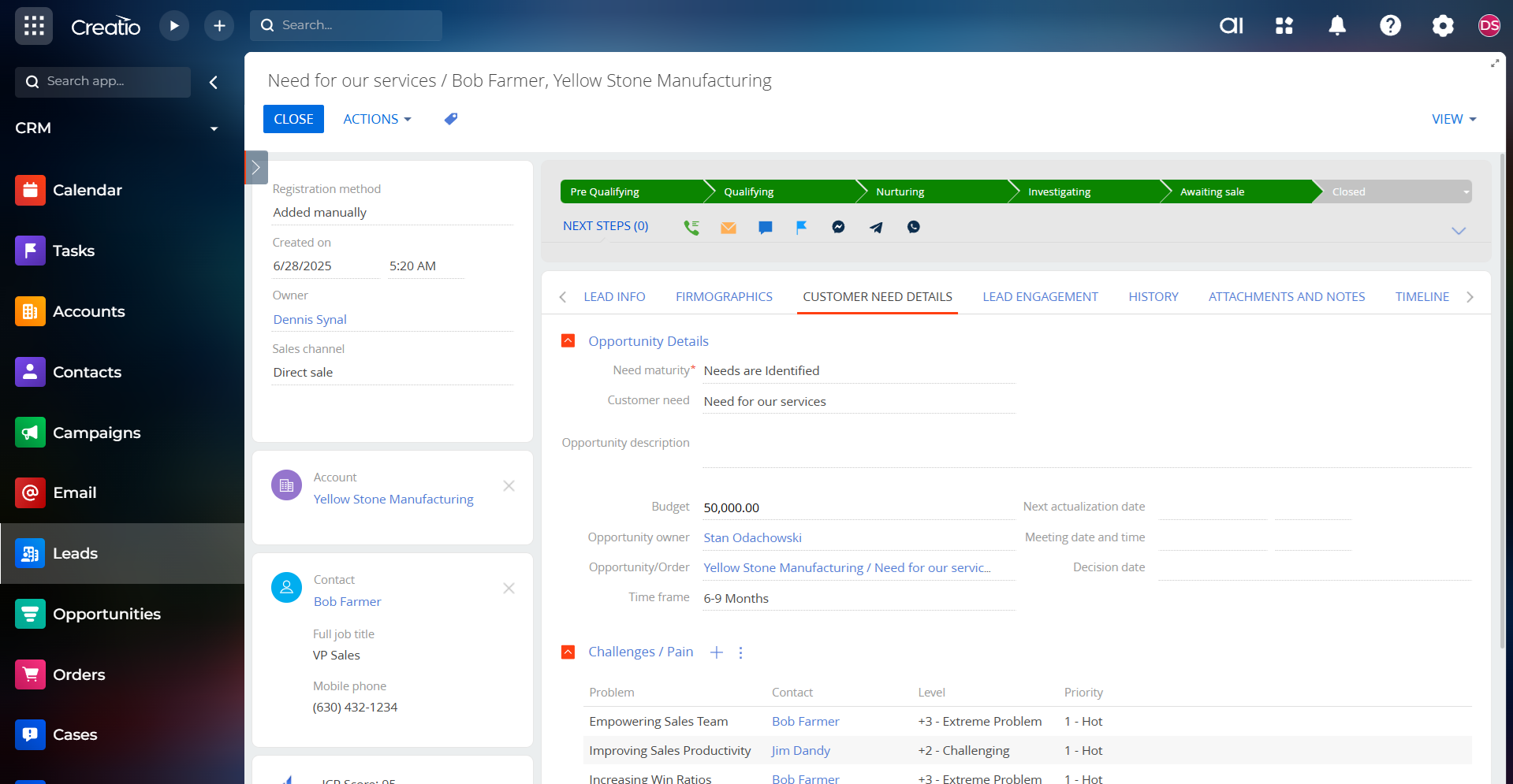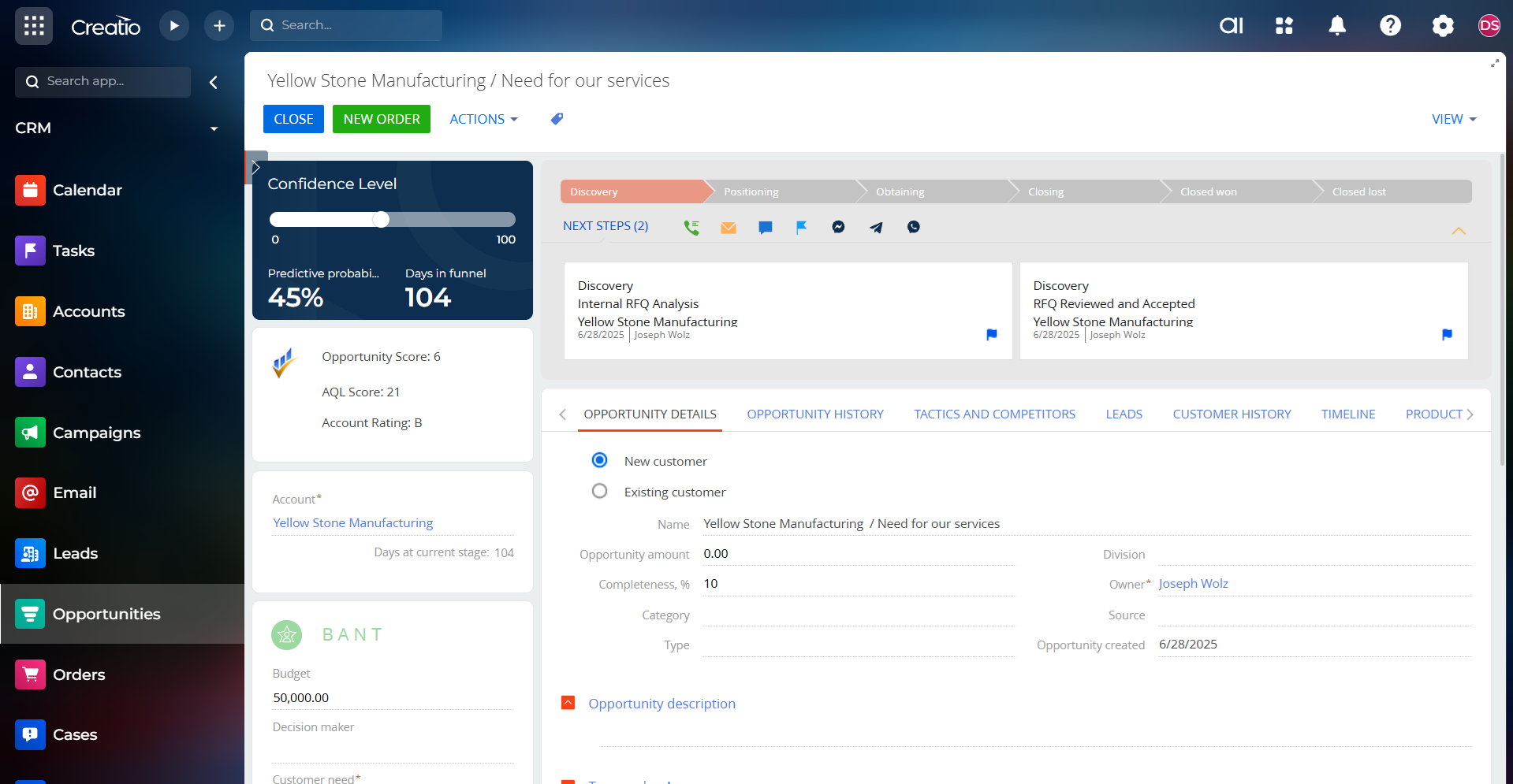 Seize opportunities effortlessly with Opportunity Management, ensuring each lead is carefully tracked and managed by your sales group with defined opportunities.