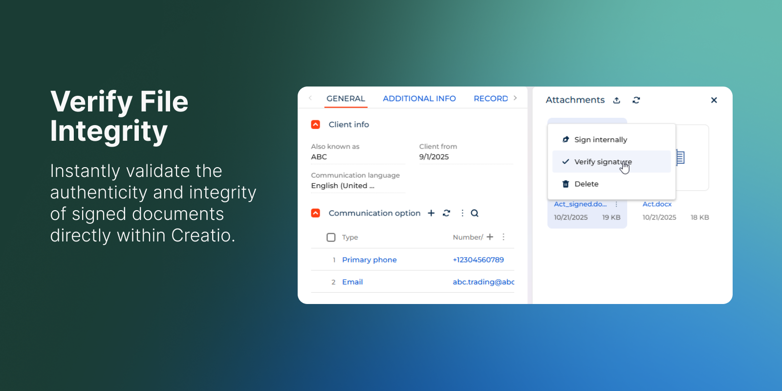 Verify the integrity and authenticity of signed files directly in Creatio.