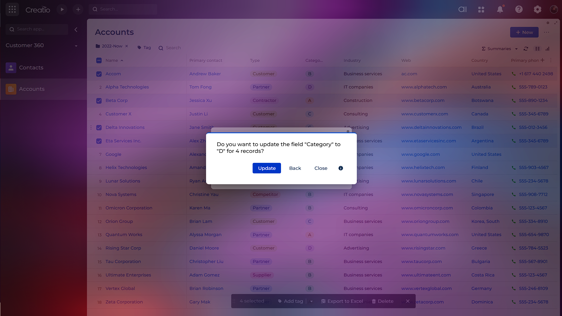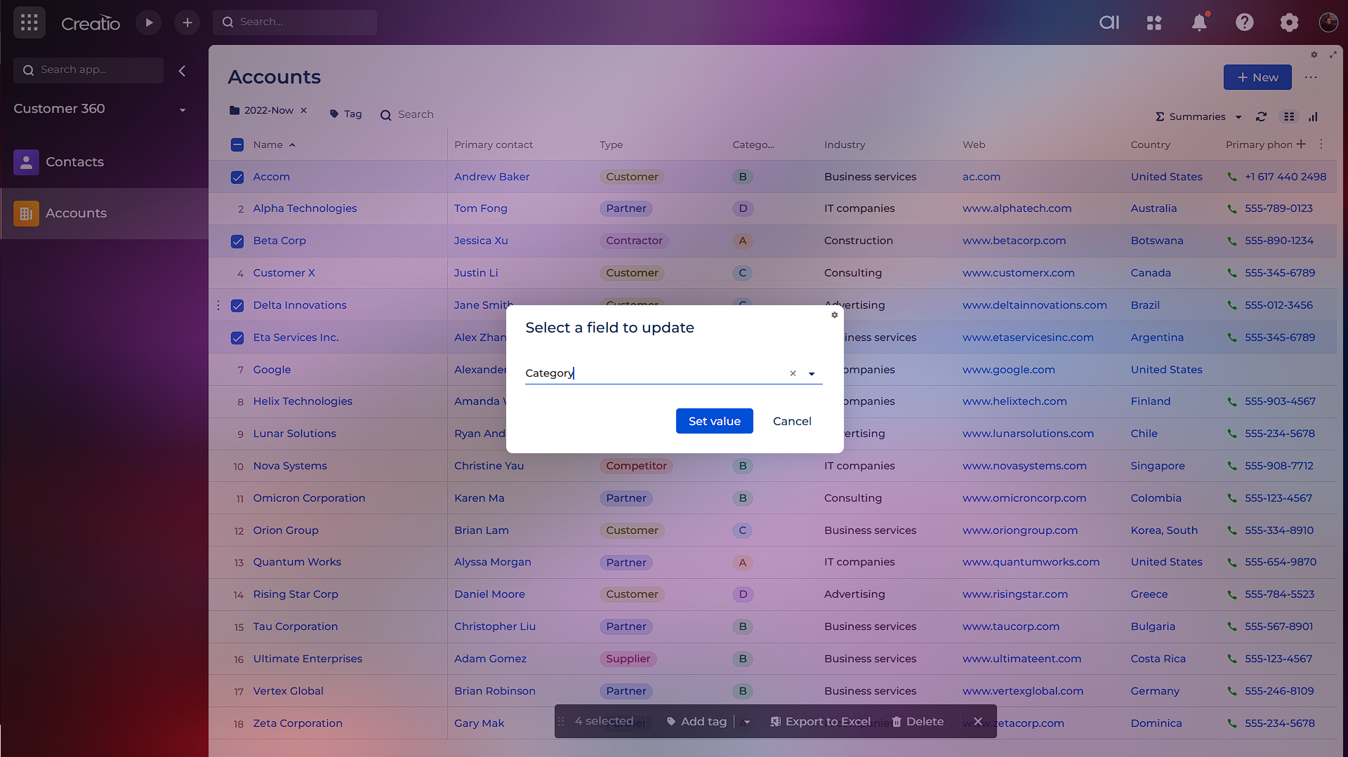 Mass Updating Pro for Creatio is an advanced data update tool fully adapted for Freedom UI. It enables administrators, citizen developers and analysts to quickly perform bulk updates in sections and lookups.