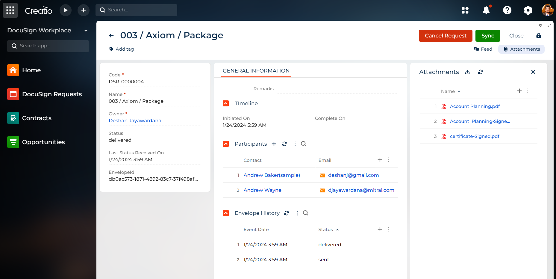 Mitra DocuSign Connector for Creatio is a one-stop solution to harness the synergy of Creatio workflows and DocuSign in order to digitally sign e-documents via a seamlessly integrated and automated flow.