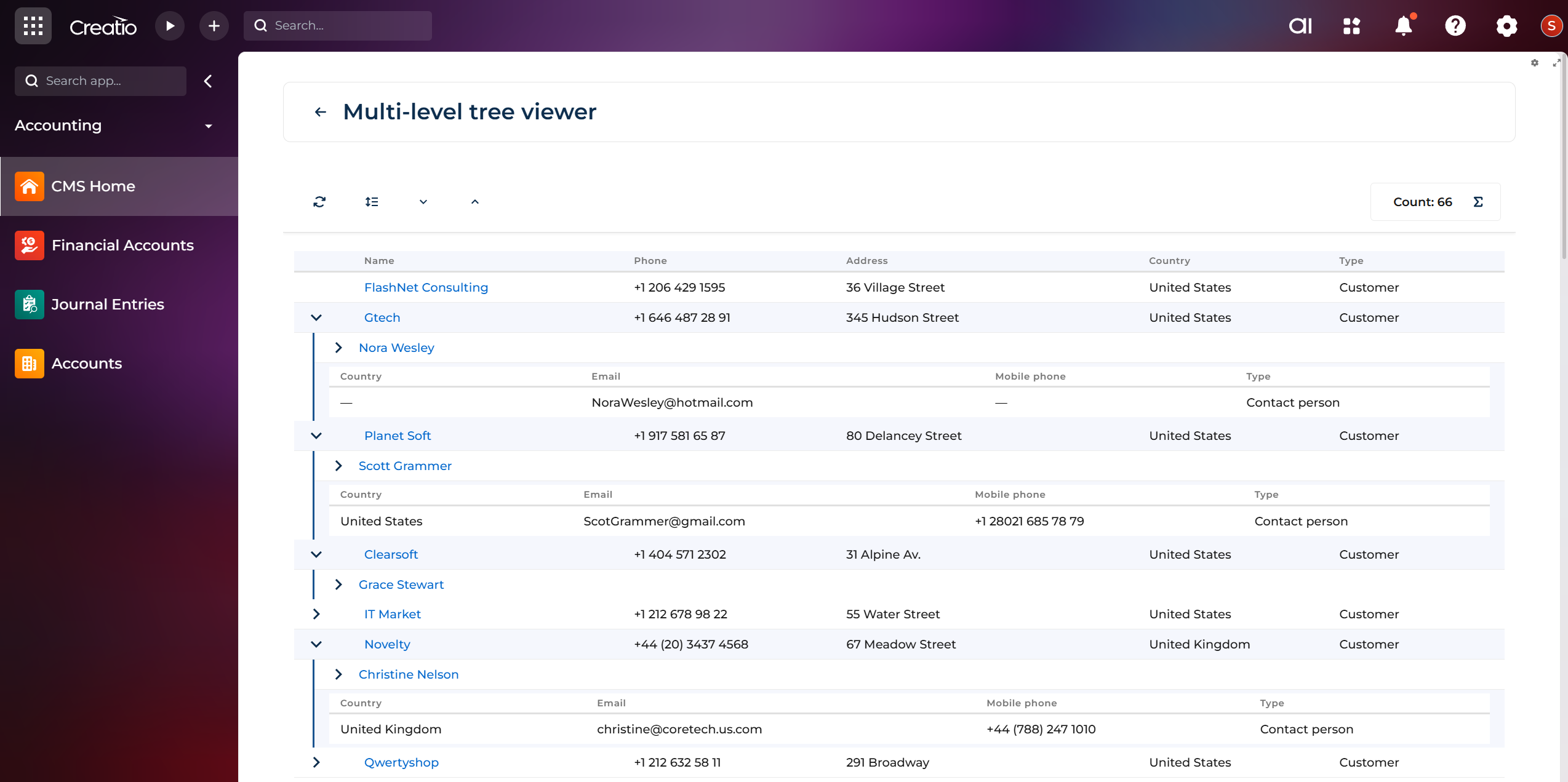 Multi-level Tree Viewer for Creatio