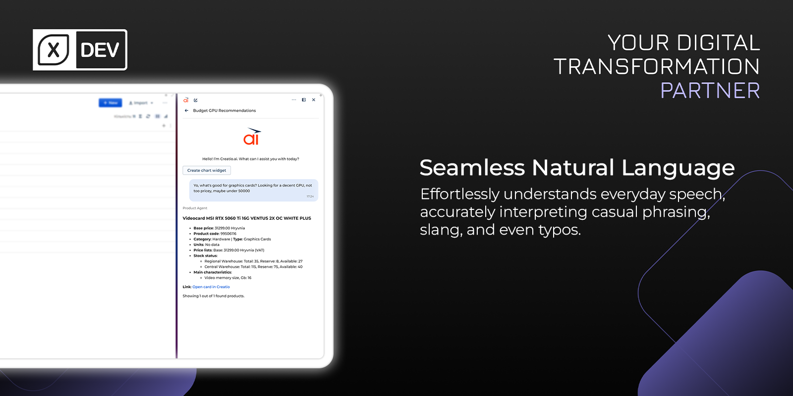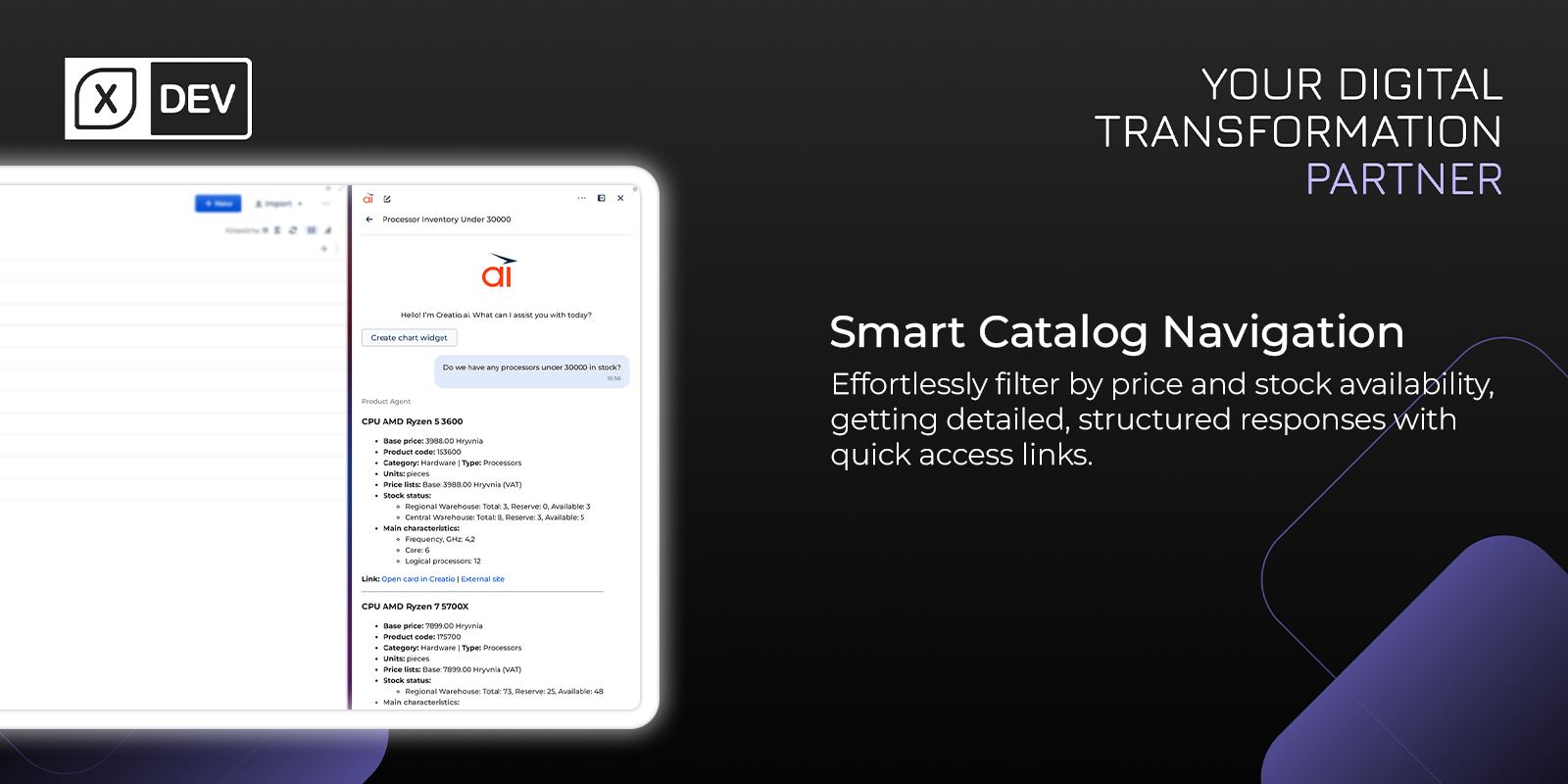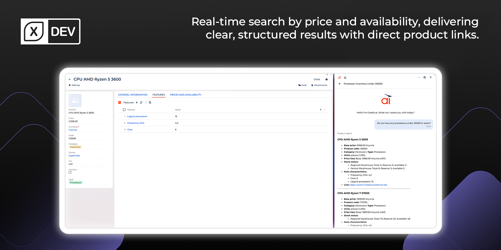 Enhance Creatio AI capabilities with an AI Agent for Product Catalog search. Enable users to query inventory, apply dynamic pricing and stock filters using natural language, and retrieve structured product data directly within the Creatio AI chat.