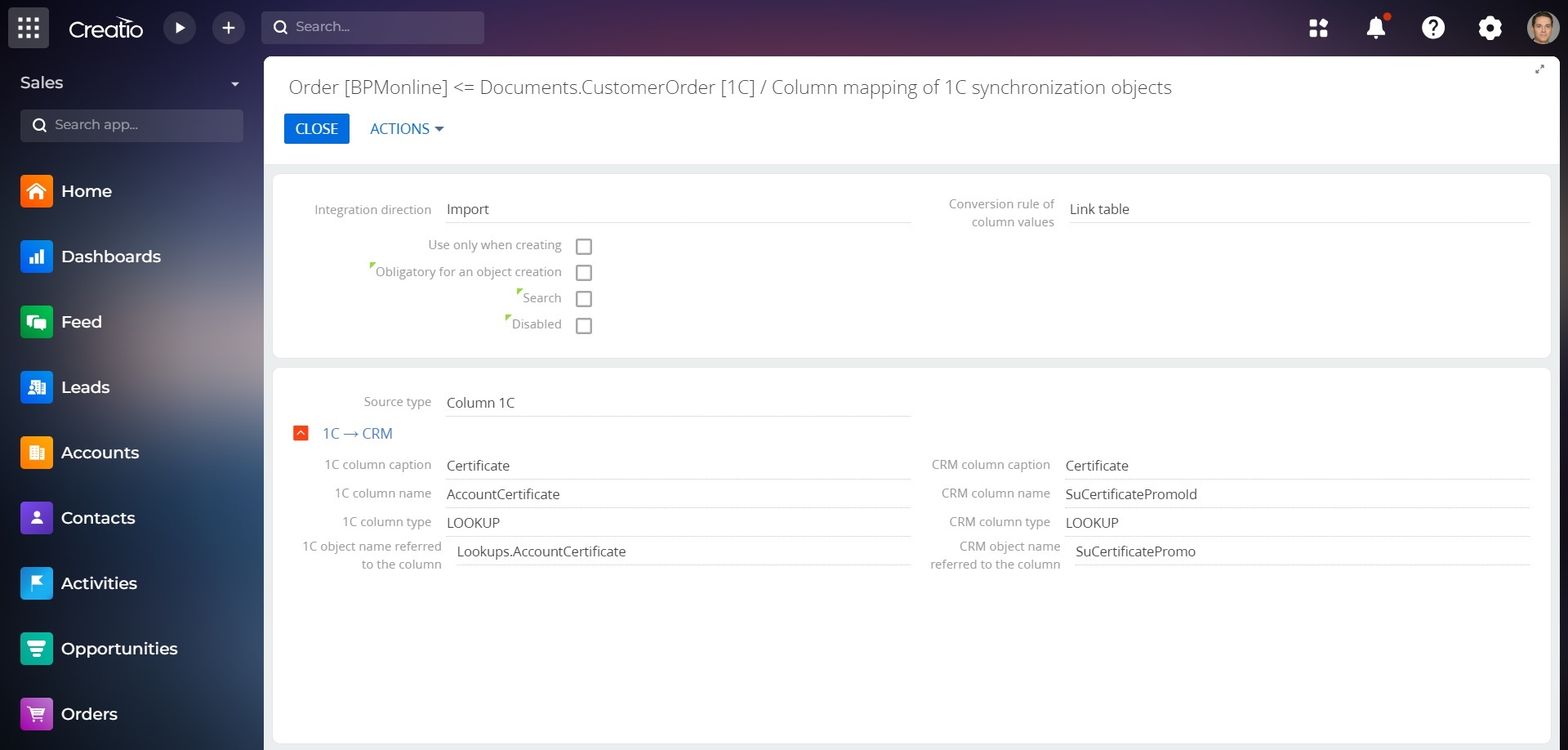 BAS integration for Creatio is a product that allows you to set up one-way and two-way data exchange between 1C and the Creatio system using the Creatio system interface.