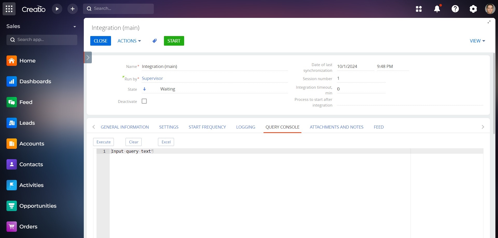 - Support for parameters in 1C queries from the console in Creatio.