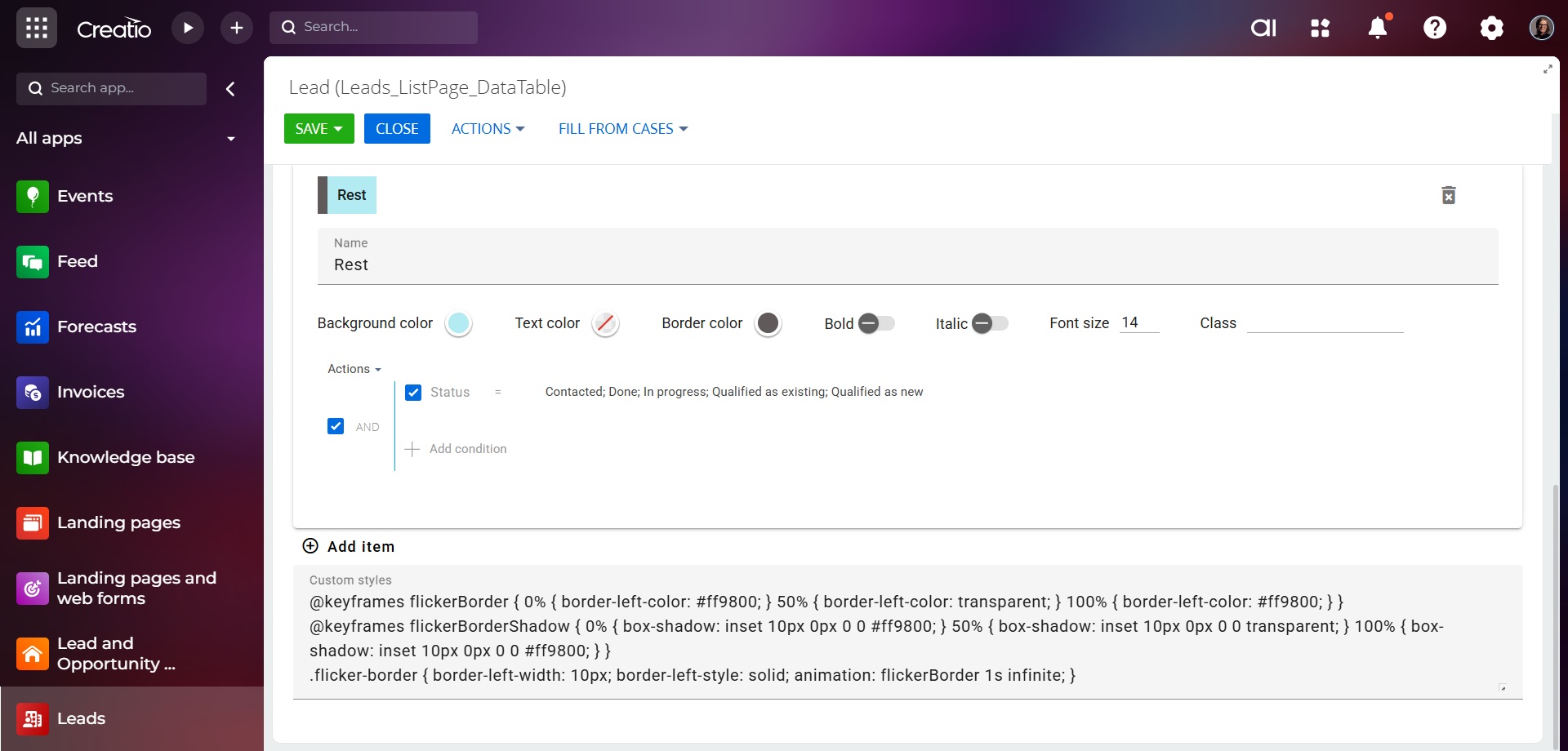 SalesUp Conditional Records Formatting for Creatio – a tool, which allows to set up conditions for the visual display of any records in section and detail registries based on any filter setting.