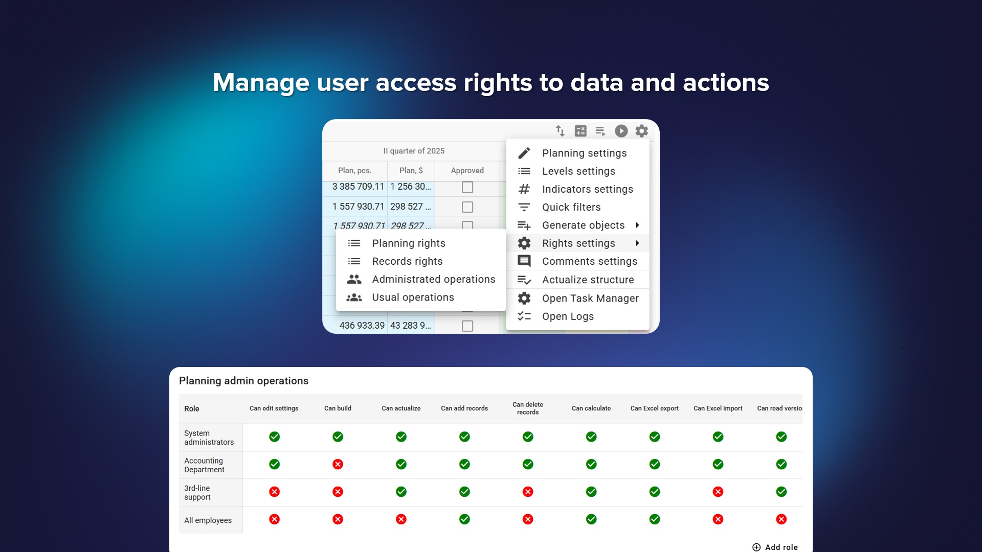 Configuration of permissions for planning operations in the new interface. The ability to configure permissions separately for each planning.