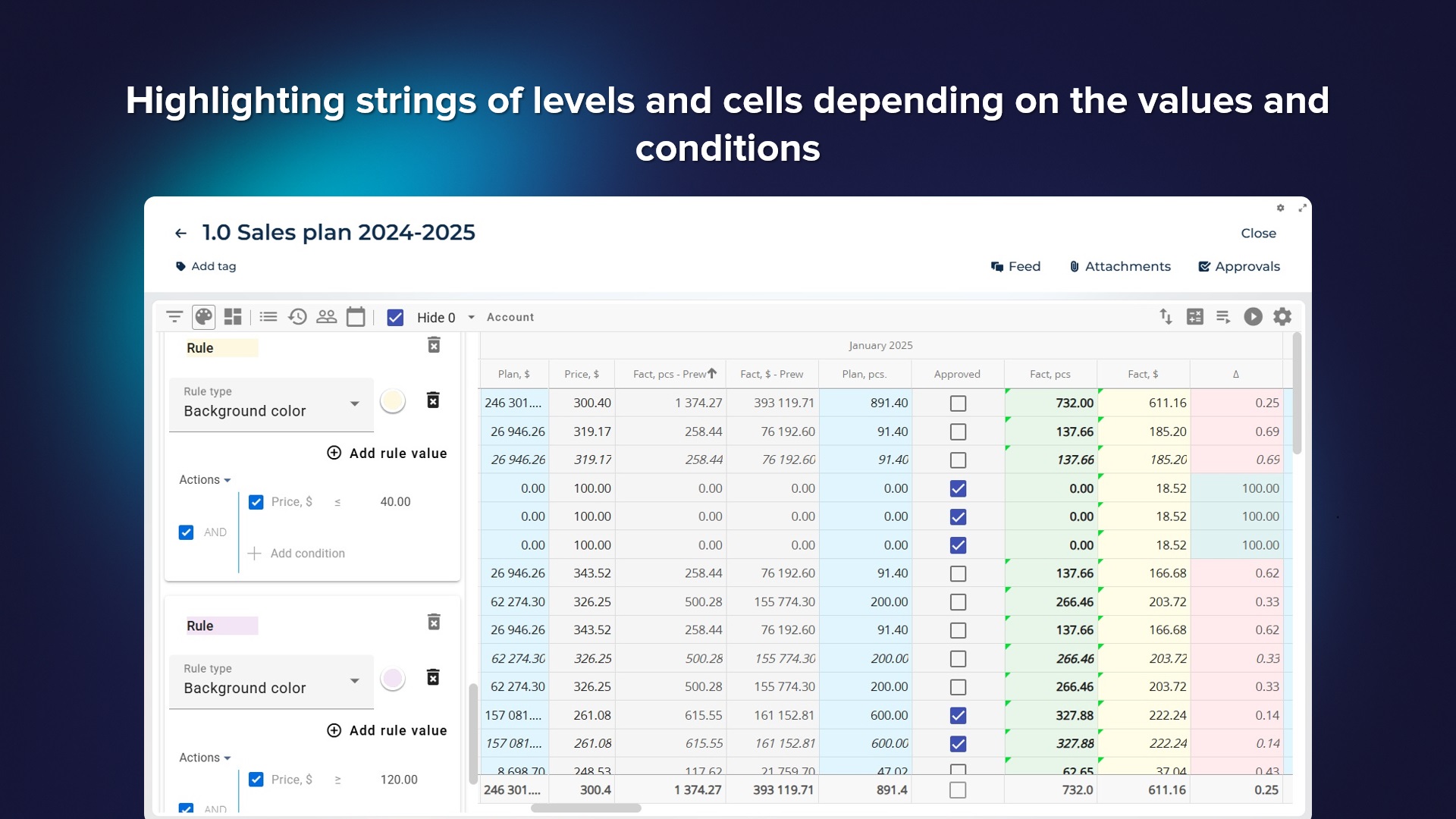 - The ability to configure editing rights for certain periods separately for each column, in terms of different roles. For example, users (all or with a certain role) can edit only future and current periods (or only the next 3).