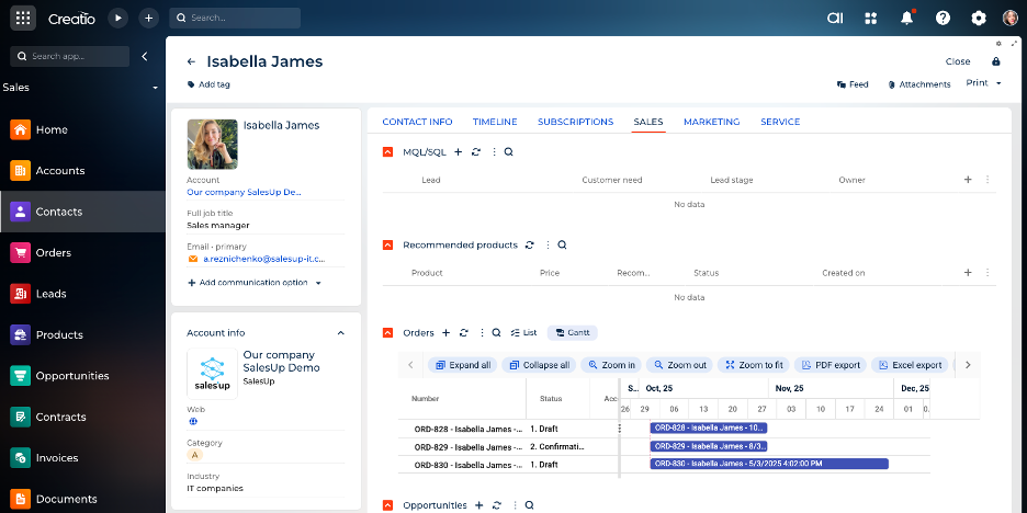 SalesUp Data views for Creatio