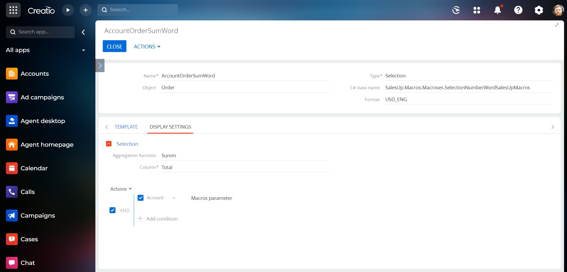 SalesUp Enhanced template macros for Creatio is a solution that allows you to set up complex macros for use in message templates dynamically. The module allows, in addition to standard macros and object columns, to insert sample values, lists, tables, priorities and other types of macros. Configuration is performed in a separate convenient setup wizard.