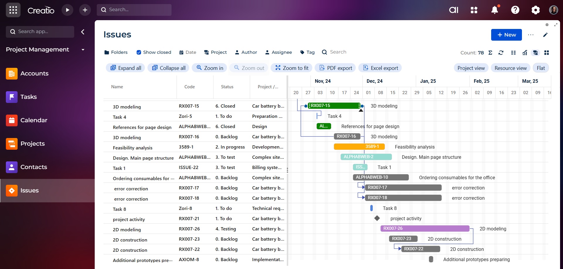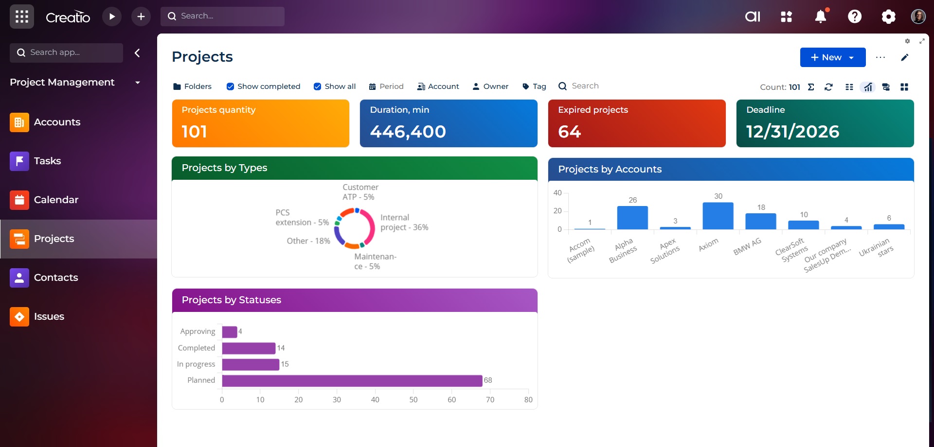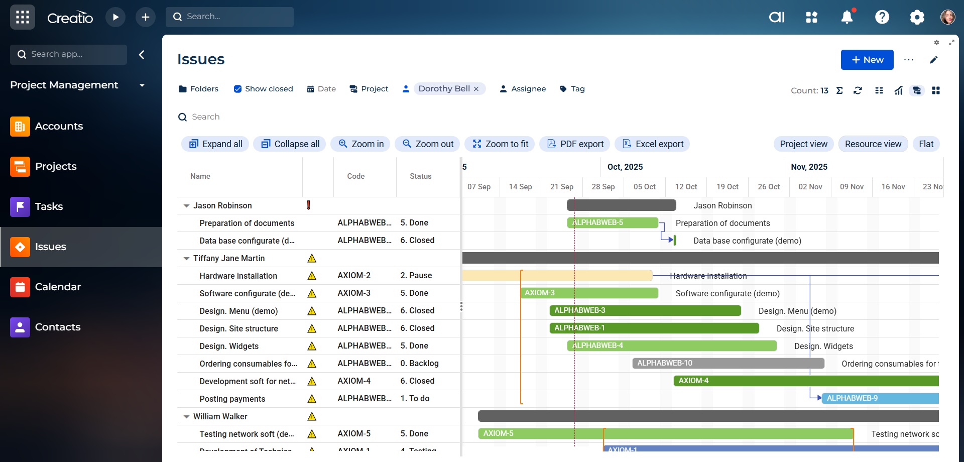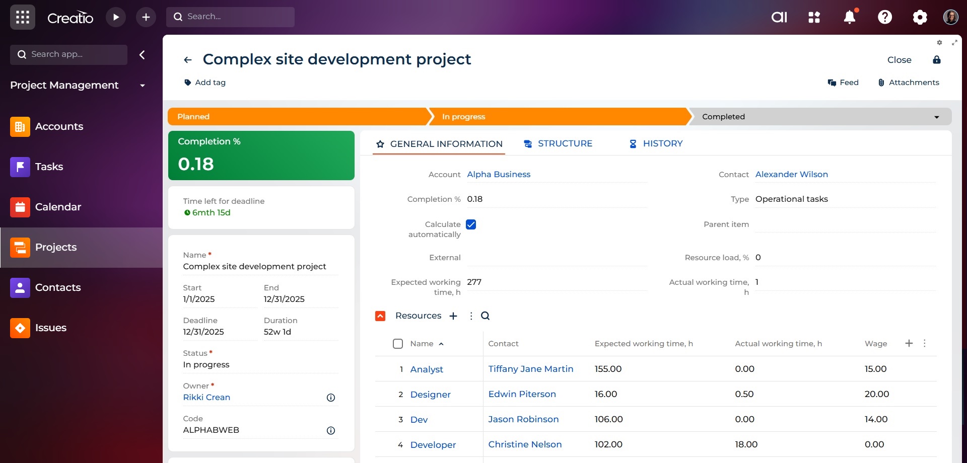 Sales'Up Project Management for Creatio - The product allows you to plan, create and manage project tasks, monitor their progress, respond quickly to deviations from the schedule and changes in the priority of tasks using a convenient view in the form of Gantt chart and Kanban board.