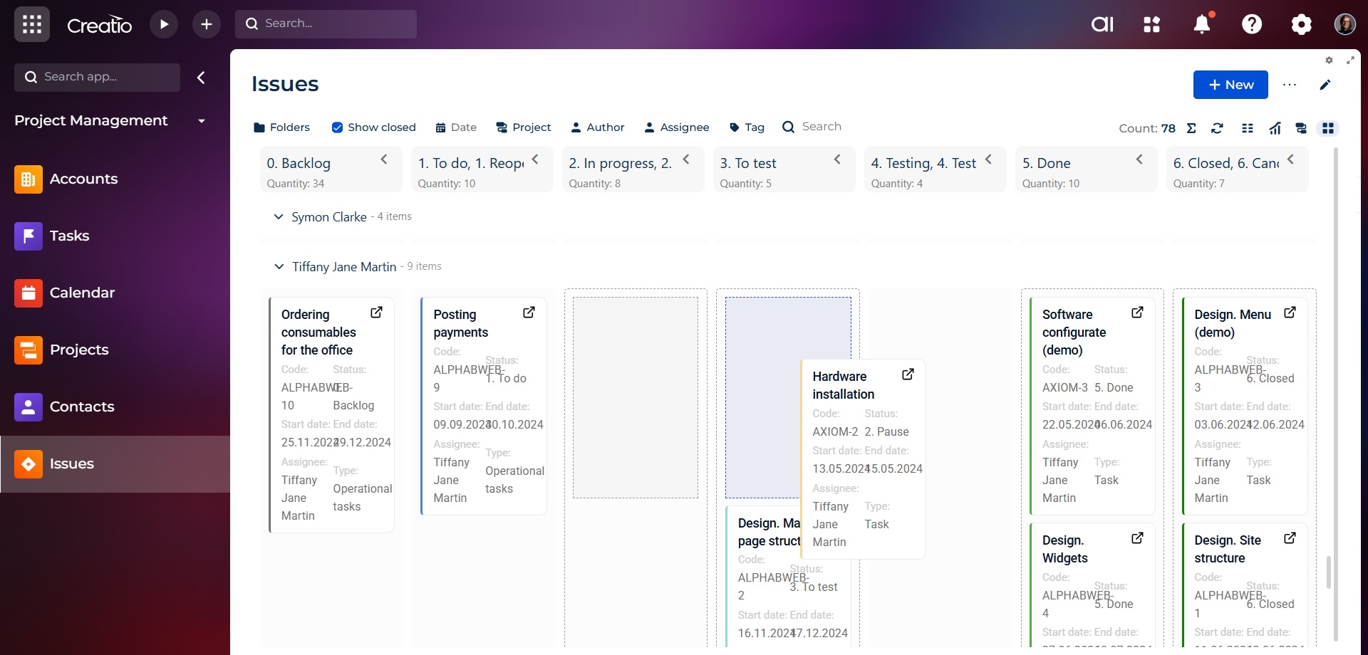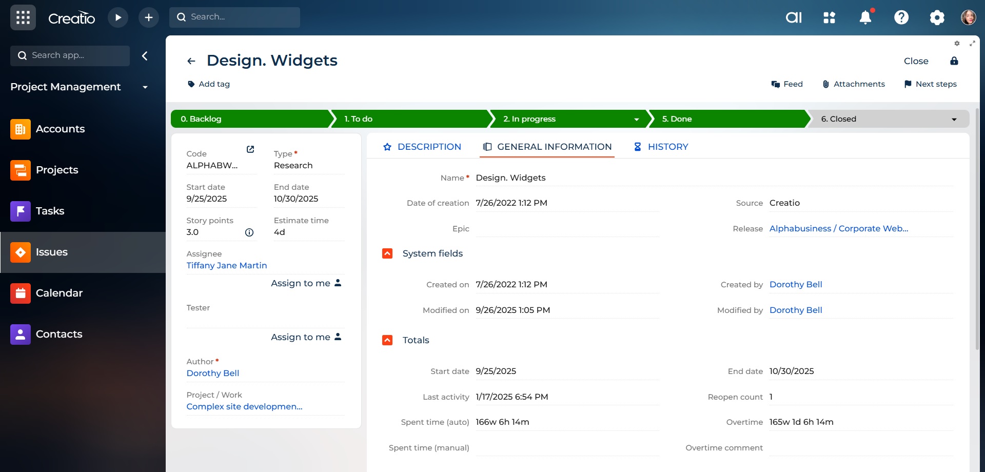 - Full adaptation of the Issues and Projects sections to the new section register interface (Creatio version 8.3.0).