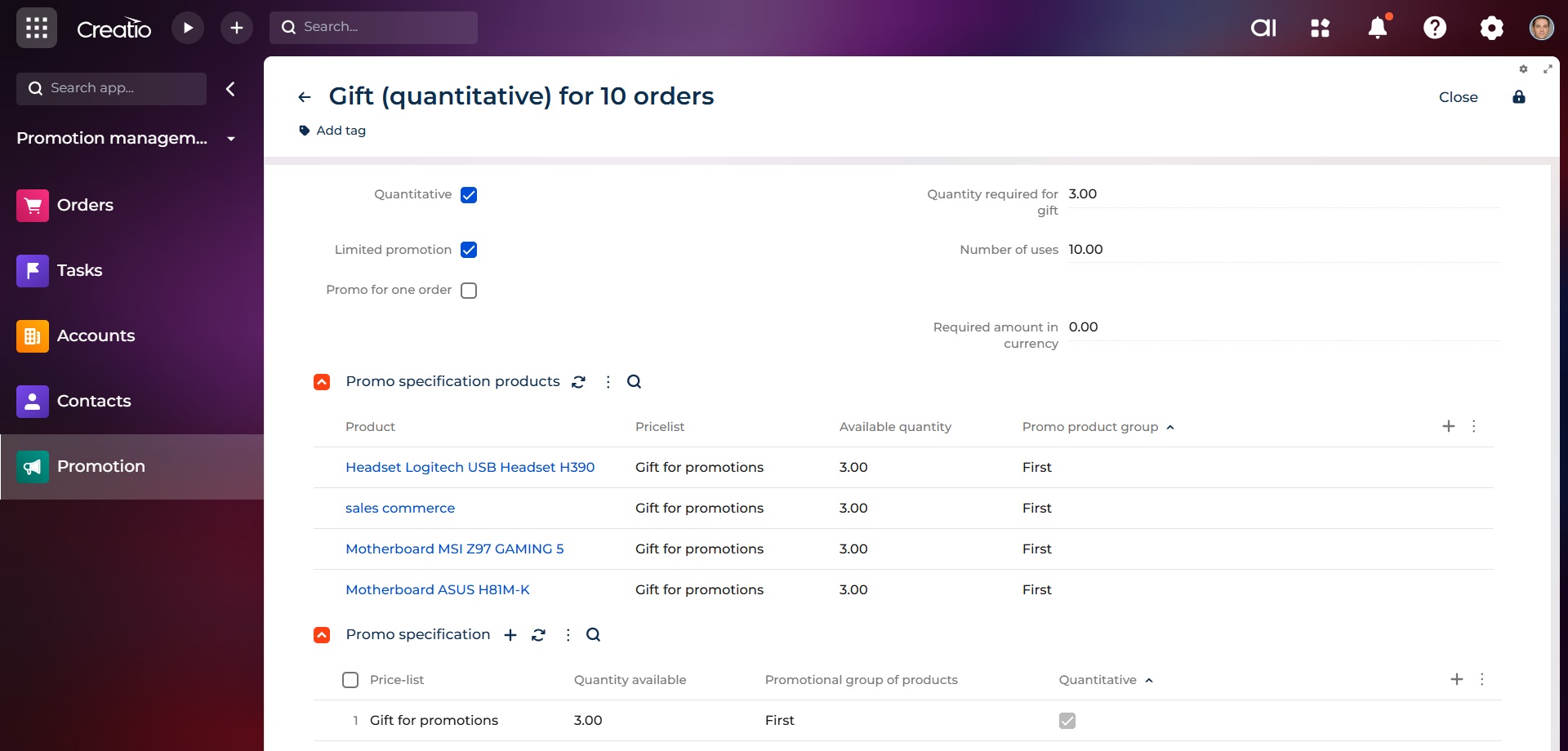 SalesUp Promotion Management for Creatio