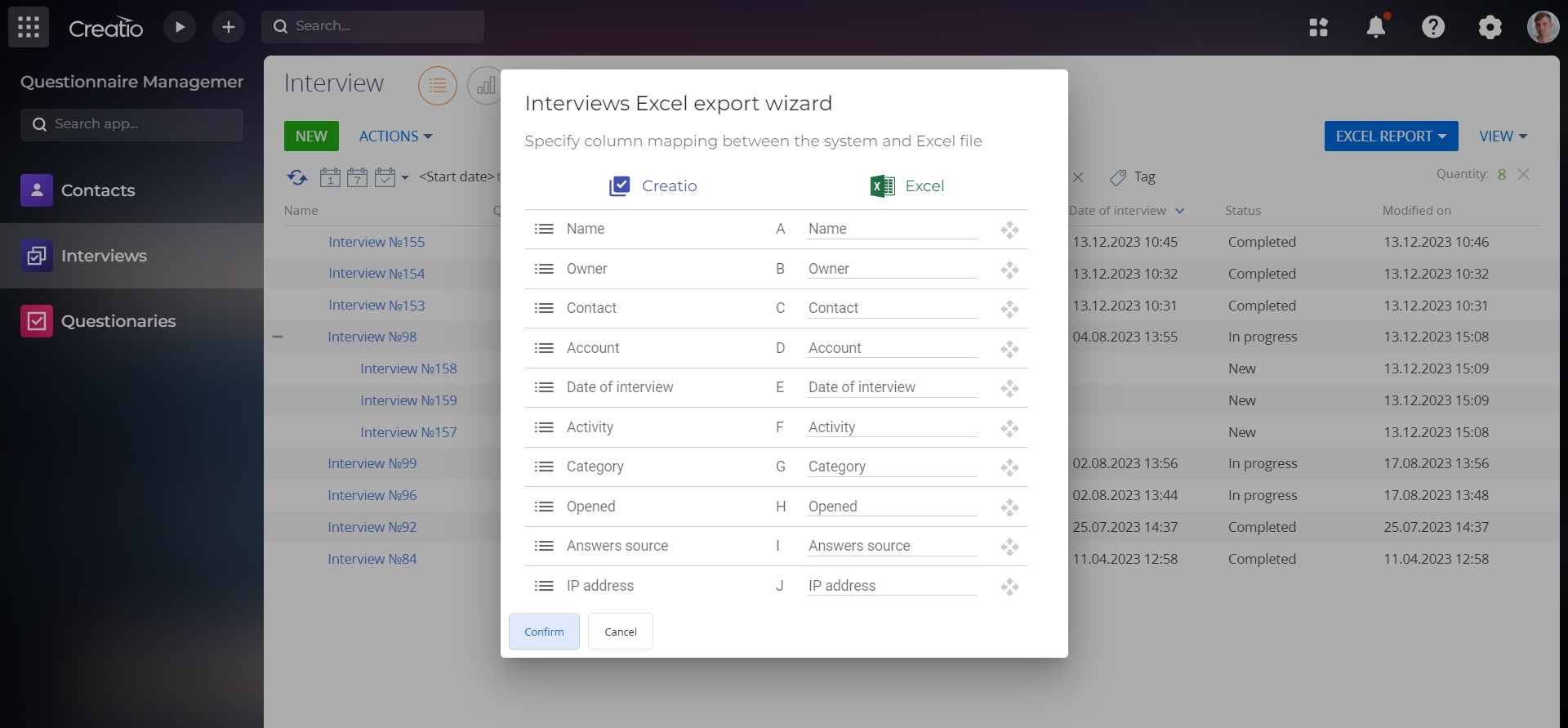 - The ability to use the wizard to export reports to Excel to configure an arbitrary file format into which survey results with answers will be downloaded;