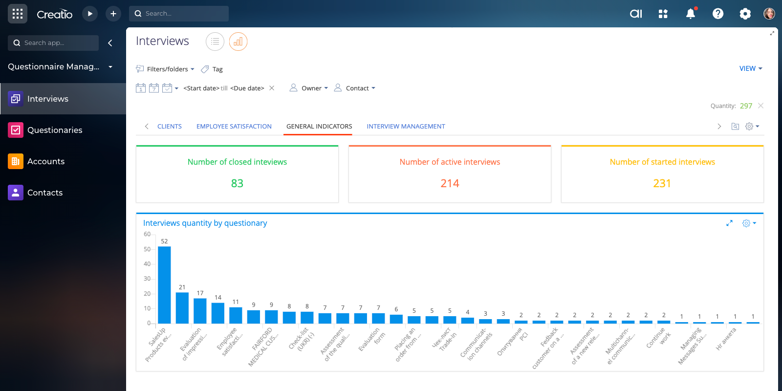 - Quickly collect analytics on the surveys carried out in Creatio and beyond;