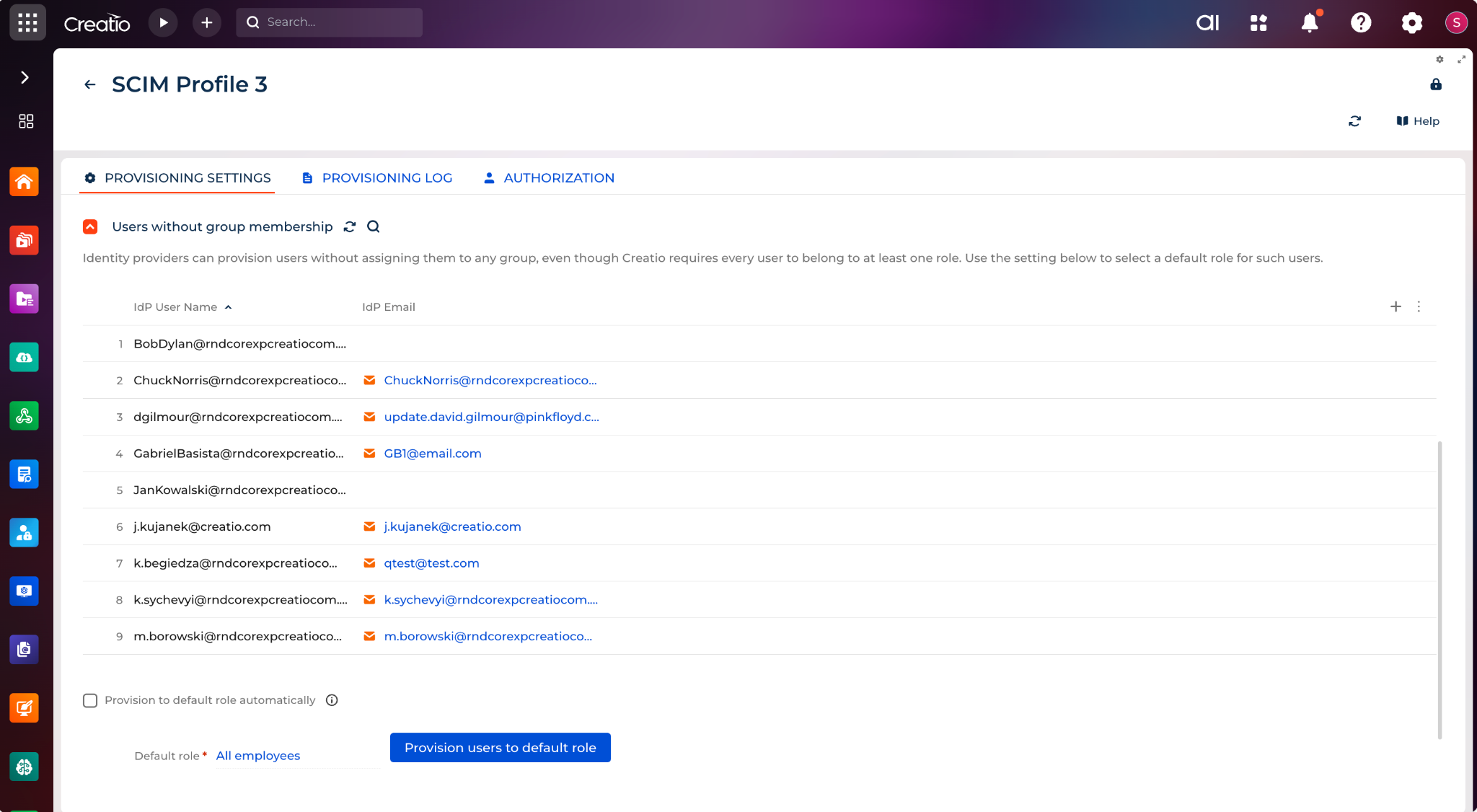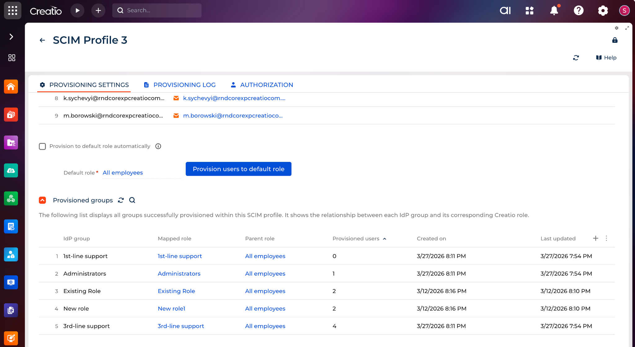 If the Creatio environment contains custom business processes that affect SysAdminUnit, Contact, or role records, those customizations can influence provisioning behavior. In such cases, all provisioning and deprovisioning scenarios should be tested before production rollout.