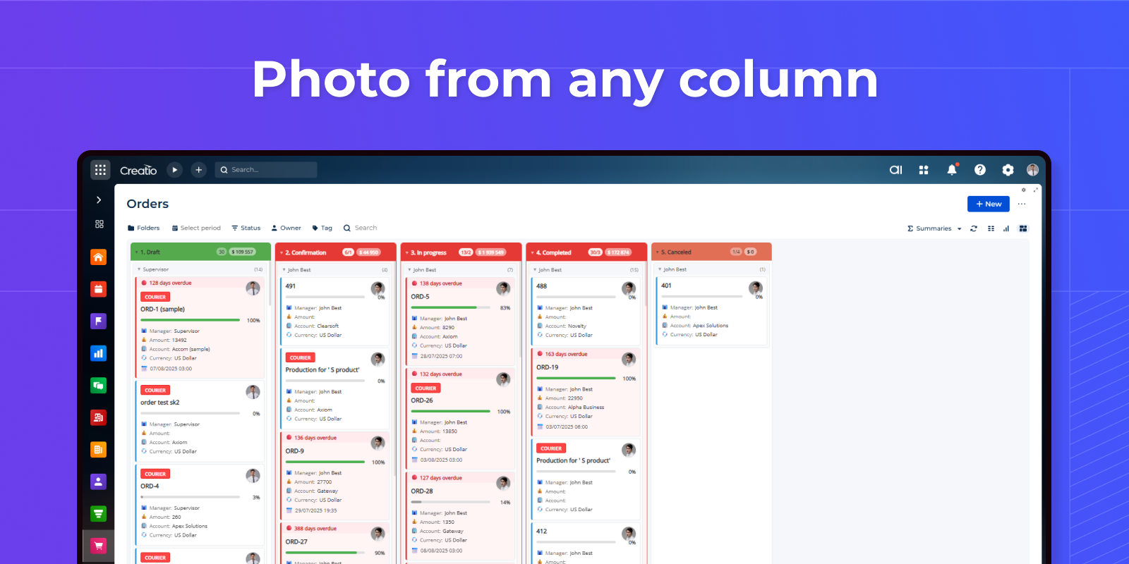 - Owner Avatars — photos from Creatio contacts on cards