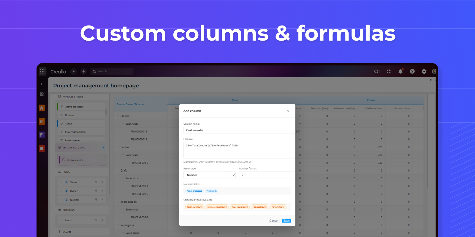 Syntech Pivot for Creatio provides fast, flexible, and interactive pivot tables directly in Creatio. It helps teams analyze data from any section, build multi-dimensional reports without developers, and make data-driven decisions faster.