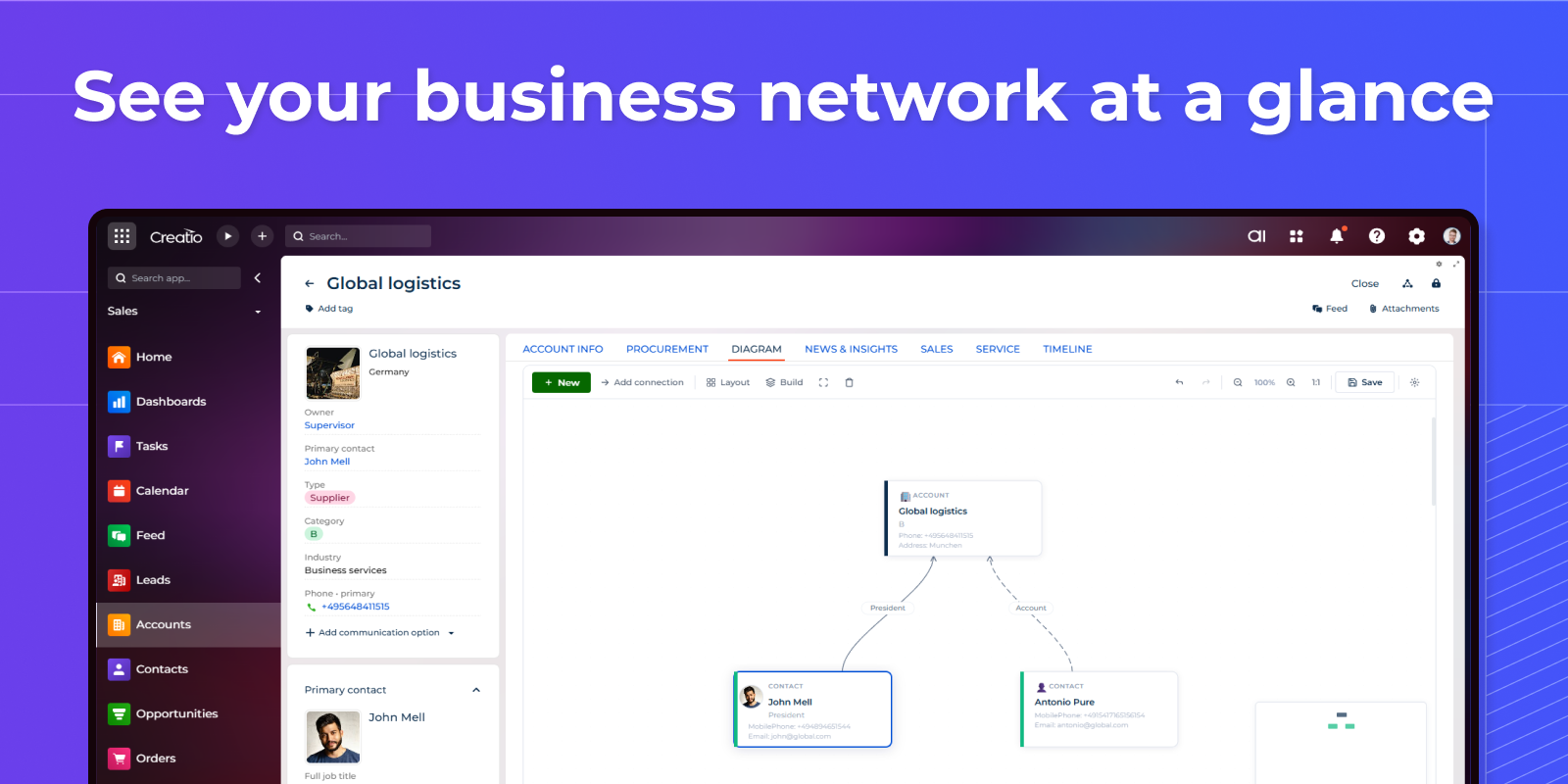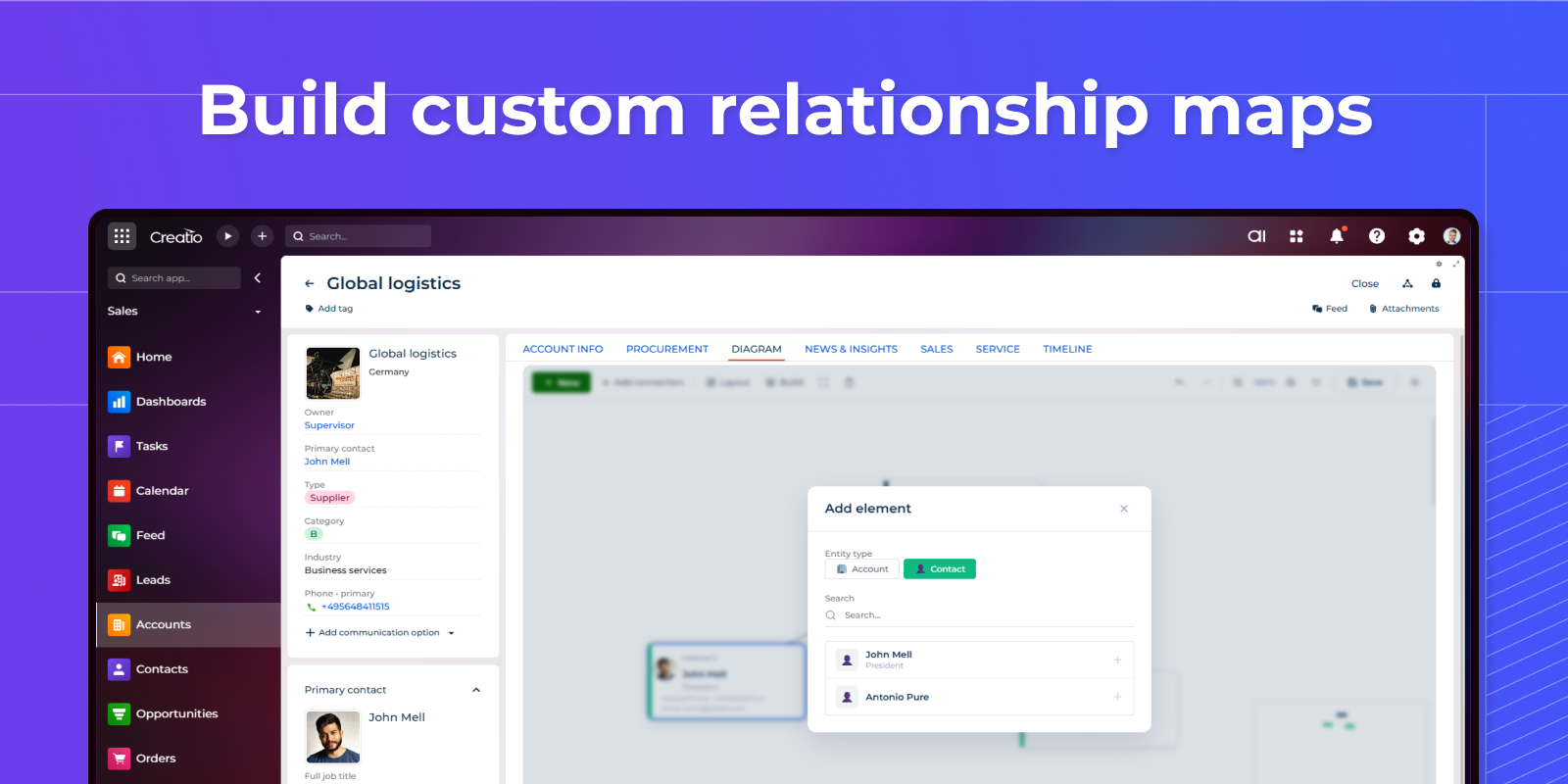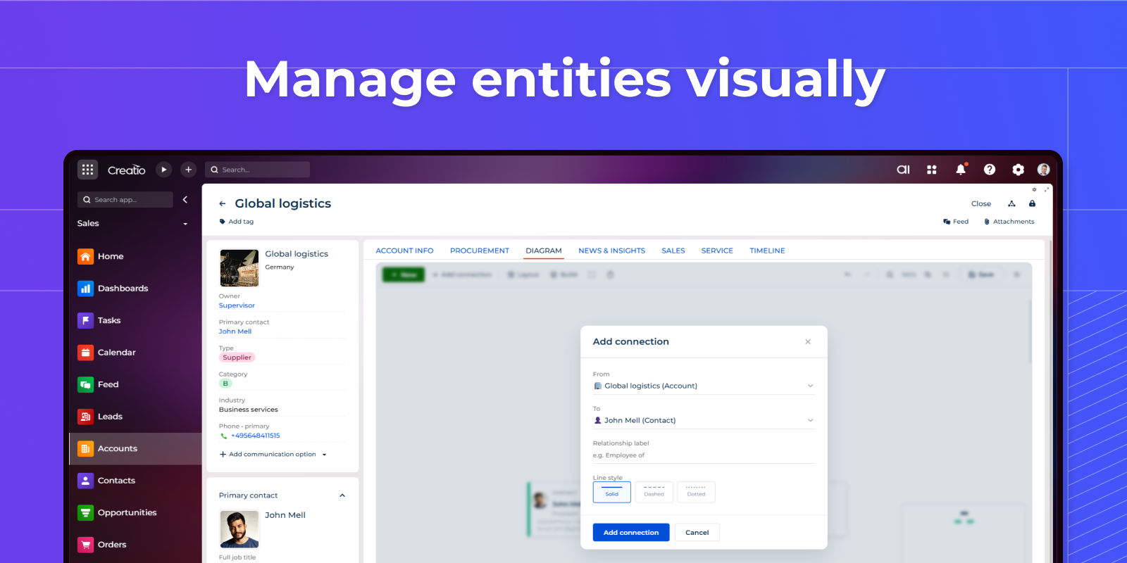 Syntech Relation Diagram for Creatio — a visual relationship mapping component for Creatio that brings clarity to complex business connections.