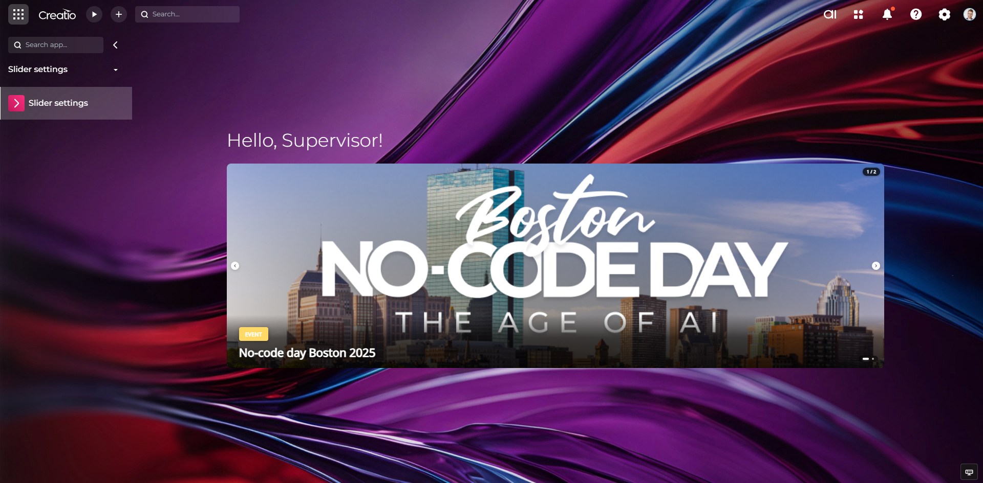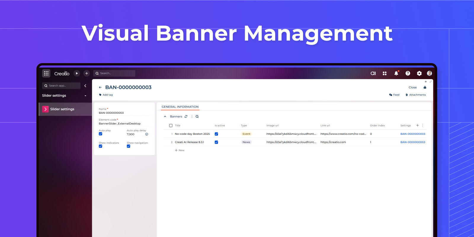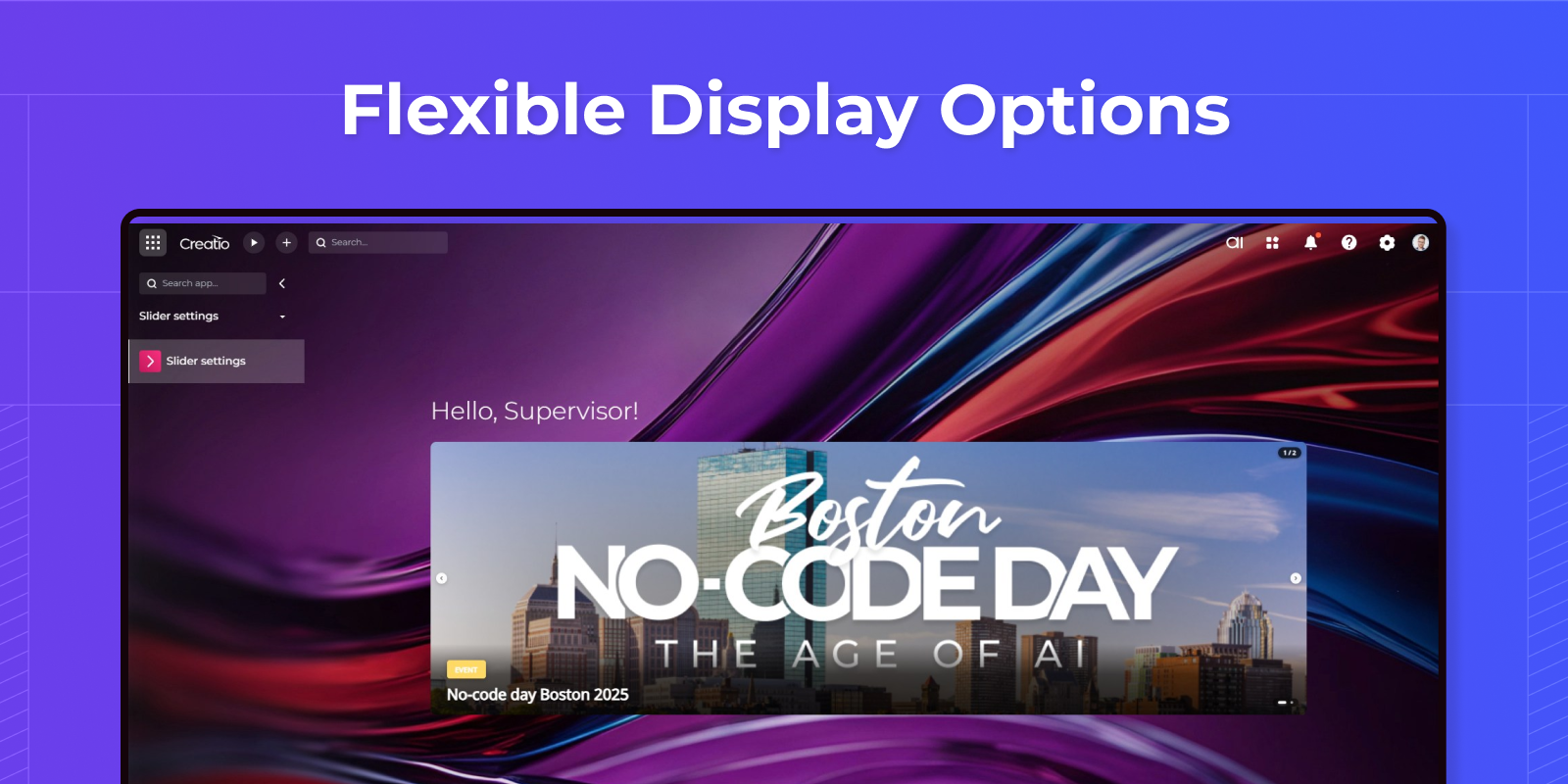 Syntech Slider for Creatio - Flexible banner management component designed specifically for Creatio Freedom UI. Transform your pages with eye-catching, dynamic content that engages users and highlights important information.