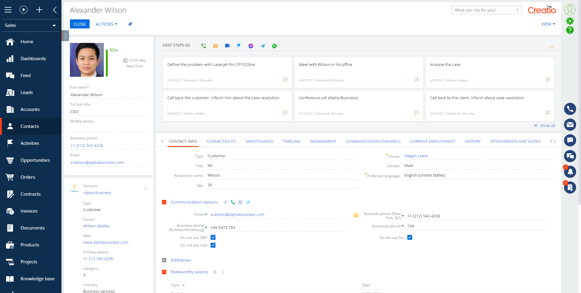 The "Telephone number validator for Creatio" add-on enables checking correctness input for phone numbers on the 'Communication options' detail of a contact page.