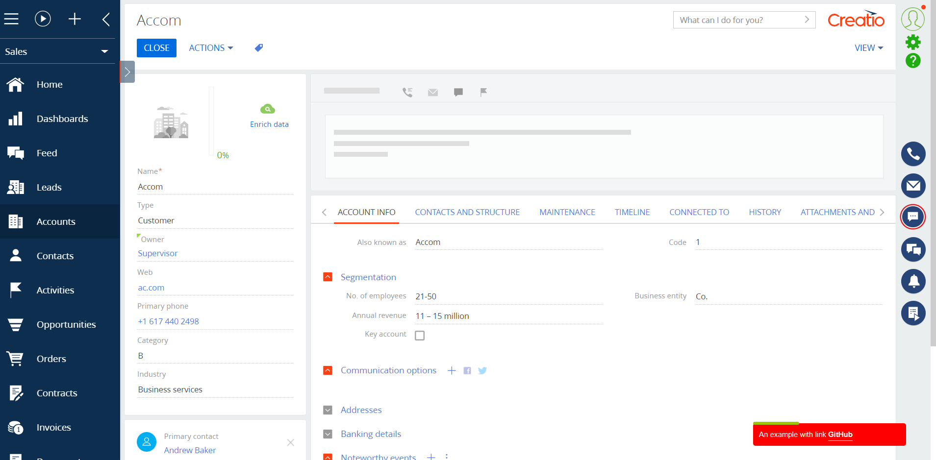 Toast dialogs for Creatio enables developers to quickly configure toast-style notifications that appear on edit pages.