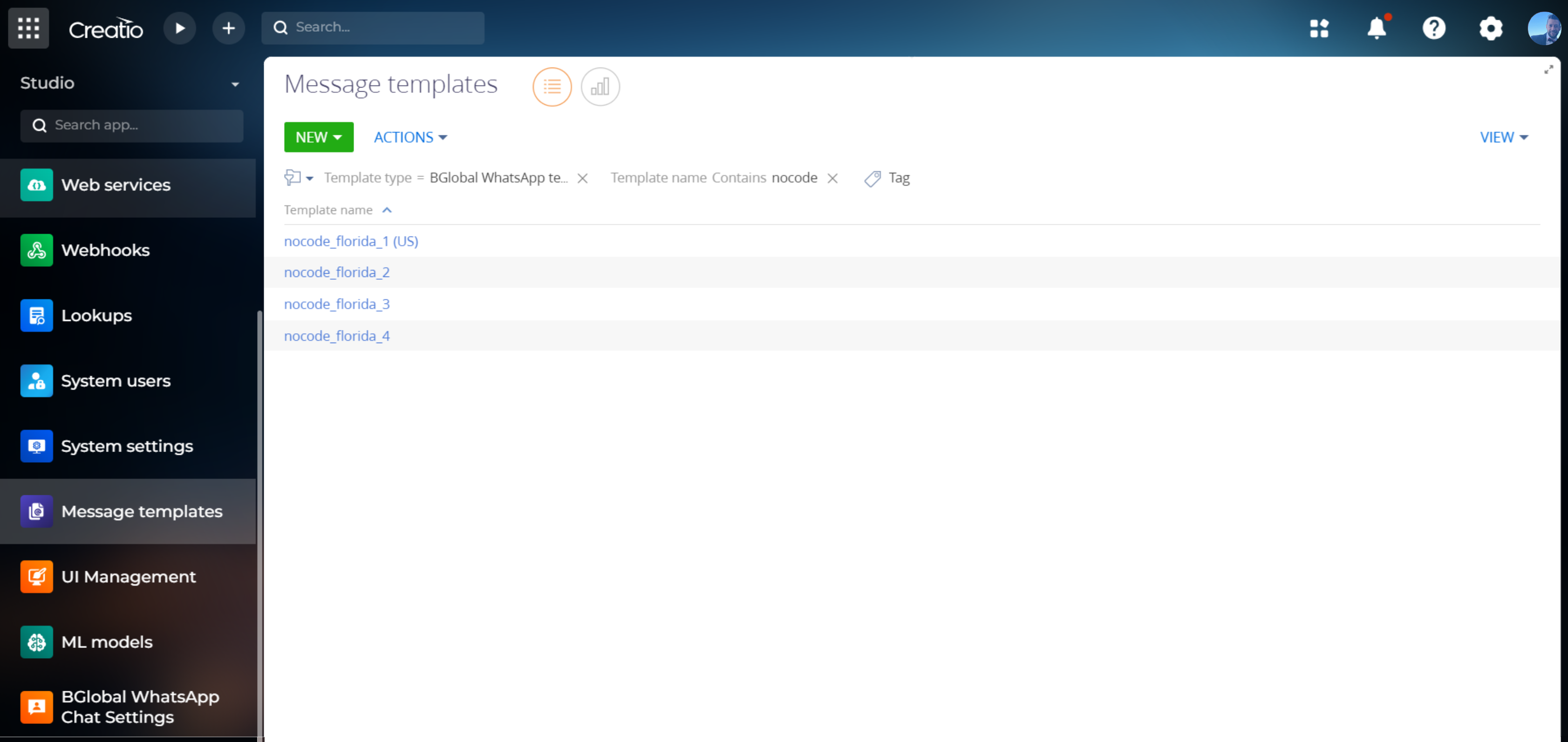 -Message templates: Upon approval from Meta, the endorsed templates are seamlessly integrated into Creatio, becoming readily accessible for utilization either through the chat communication panel or via the business process.
